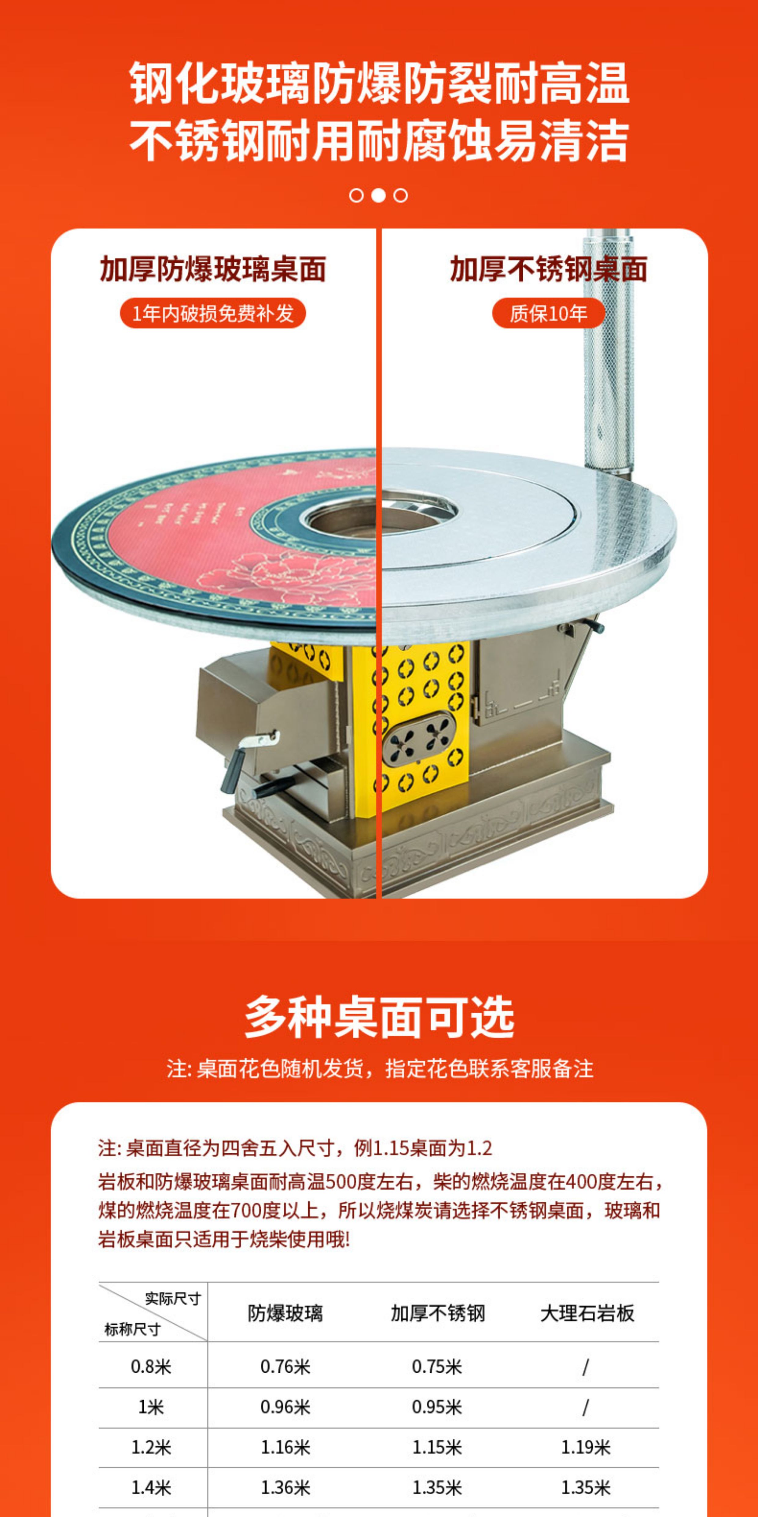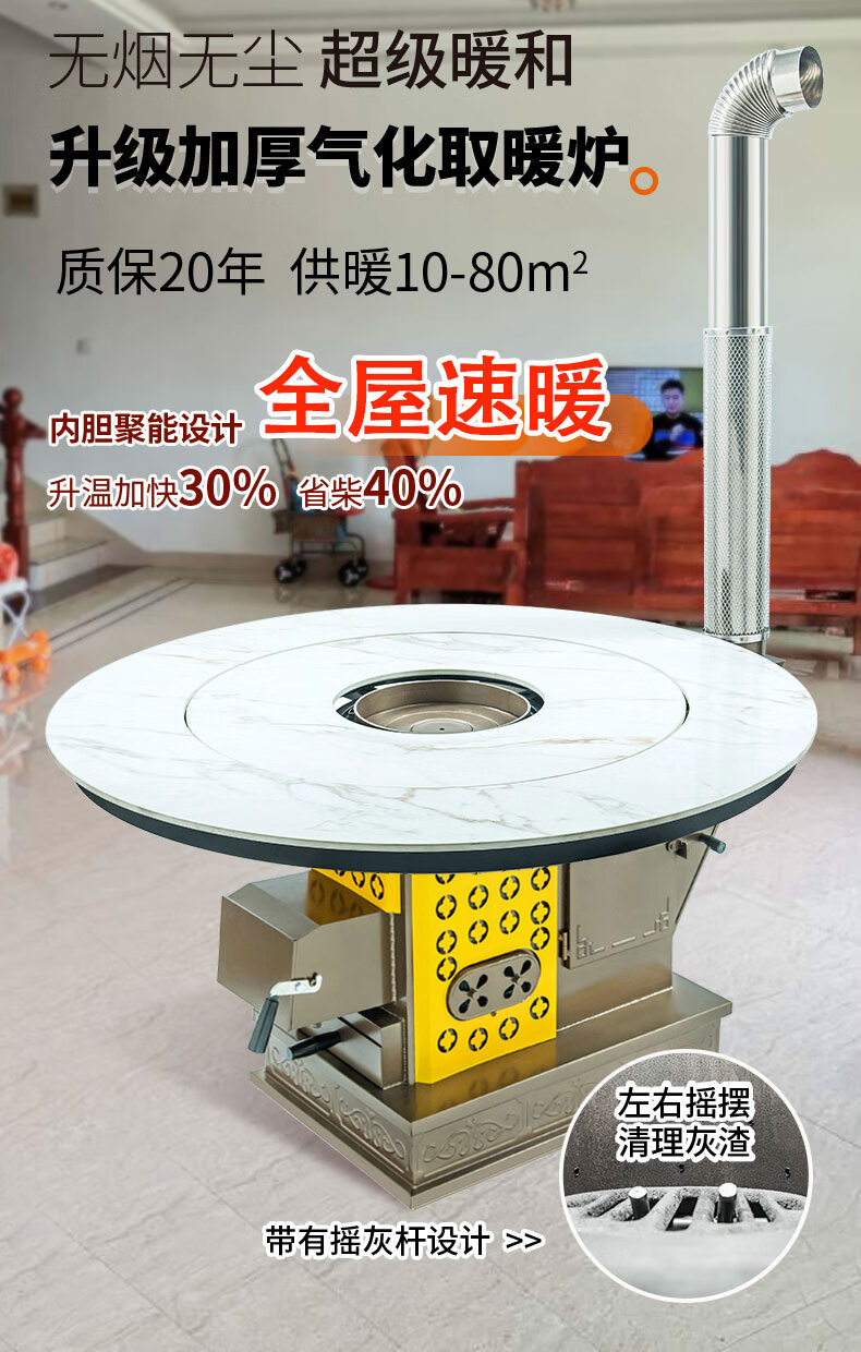璞灶旺回风炉农村家用取暖柴火炉煤火炉柴煤两用炉多功能烤火桌节能取暖 0.8米钢化玻璃桌面 柴煤两用炉