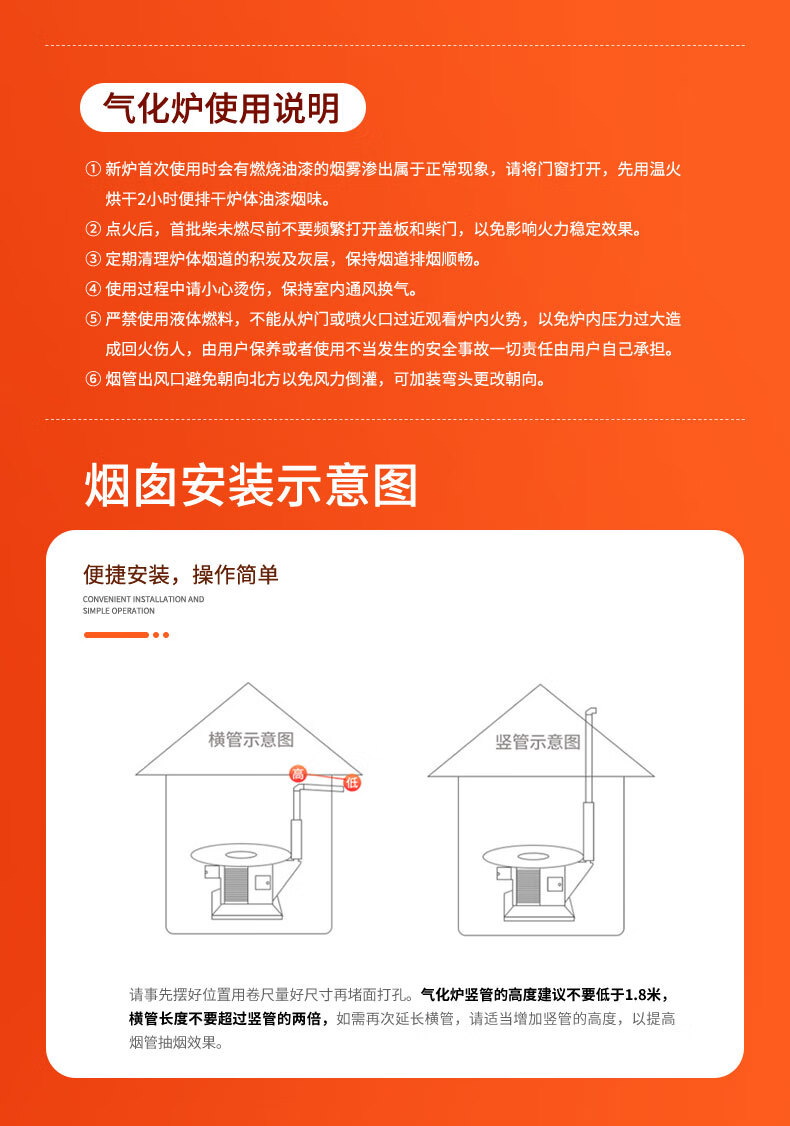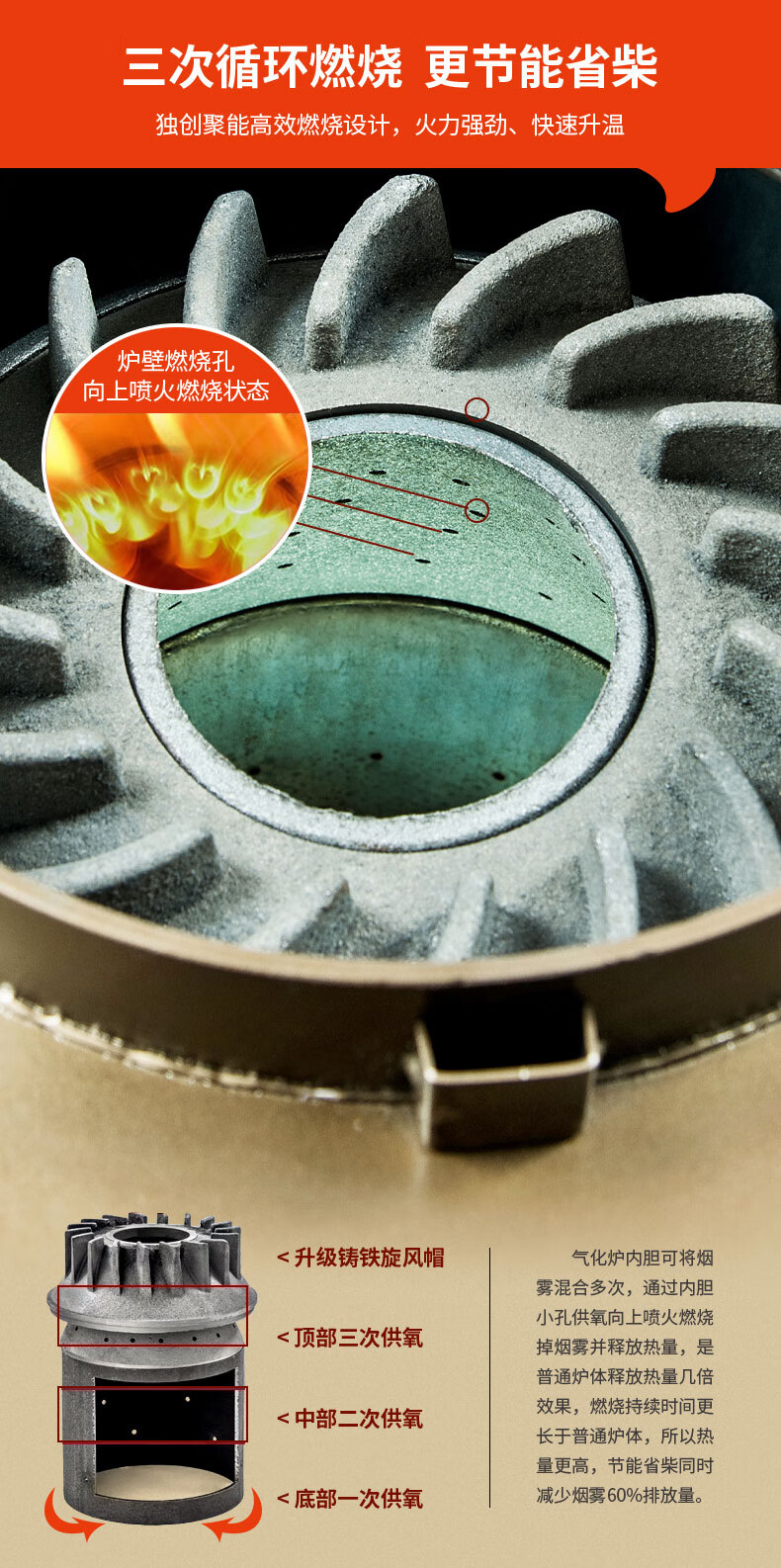 三冬新型农村家用气化炉室内冬季烧柴取暖烤火炉柴煤两用无烟柴火炉灶 1.2米/珐琅彩瓷/单面板/黑