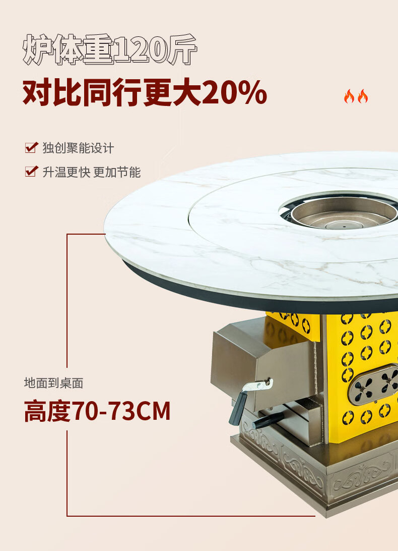 炊火匠新型高端气化炉冬天农村取暖炉子柴煤两用室内无烟柴火烤火炉 【岩板桌面】1.2米平转(白)