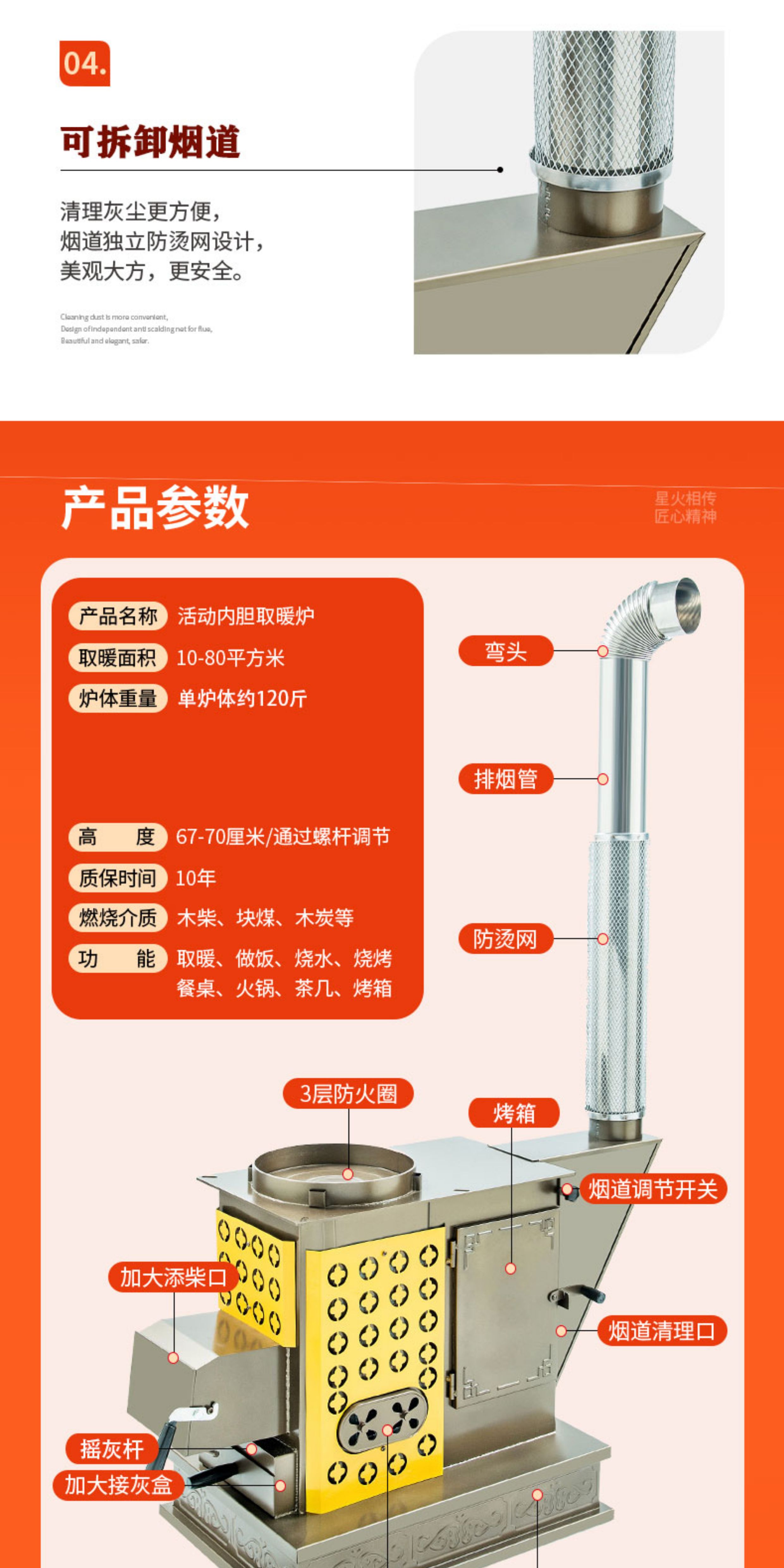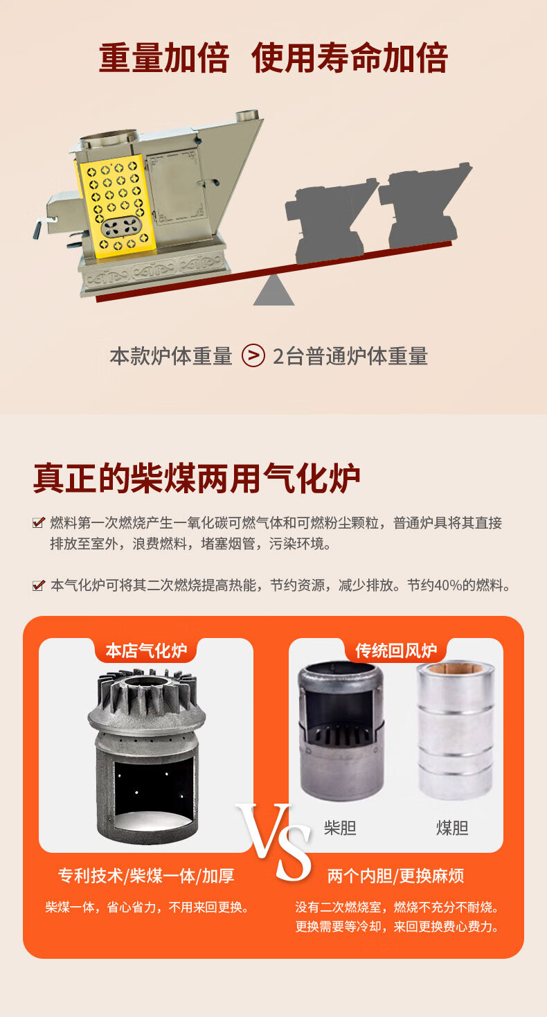 土灶旺冬季柴火灶加厚加高农村取暖炉烧柴家用节能采暖炉室内柴煤两用多功能回风炉烤火炉子 特厚款 1米加厚不锈钢【柴炉】