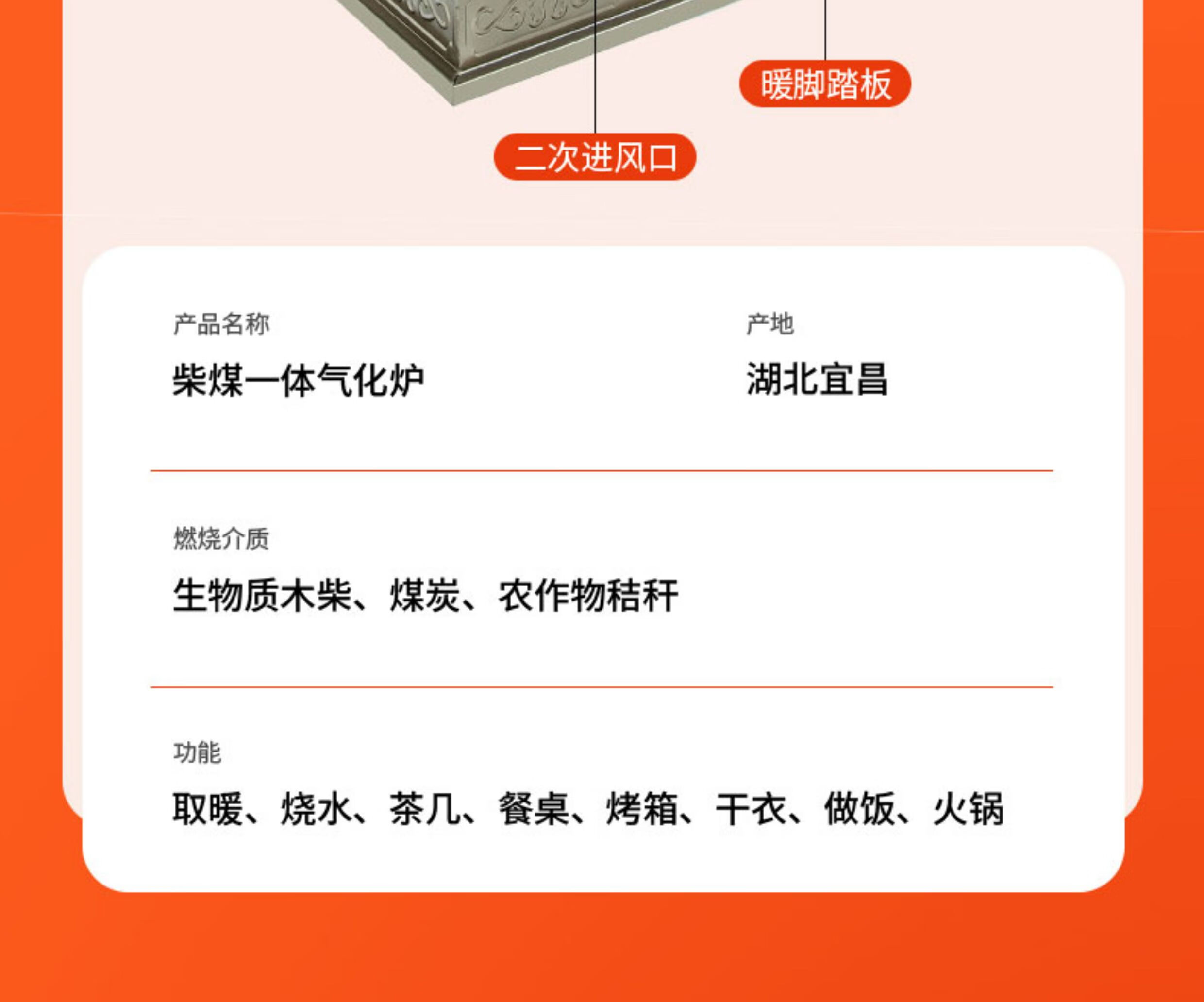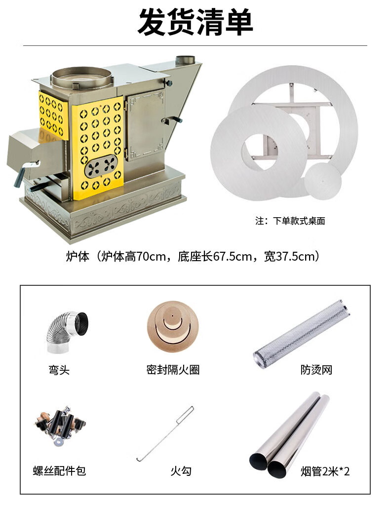 昊燃 【送货上门】加厚气化炉农村家用烤火炉柴煤两用汽化炉节能暖炉 0.8米不锈钢桌面+气化炉