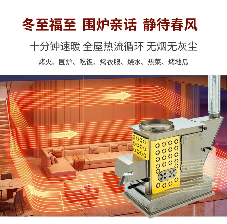 昊燃 室内烤火炉柴煤两用回风炉农村取暖器家用煤炭烧柴不锈钢炉子 A款柴煤烤火炉90*90*64(高)
