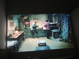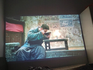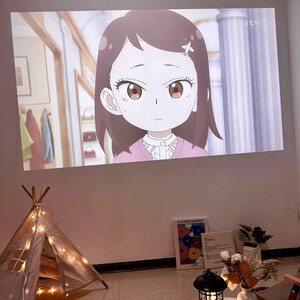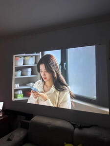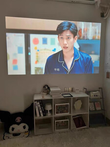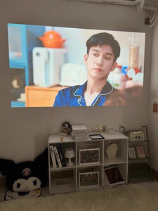 朋友推荐我来买的,收到就使用了,这是晚上开灯的效果,感觉这个画质极好了,音效也没问题,能够看的特别清晰,手机投屏也是随时都可以投影上去,不会有延迟,真的感觉棒。