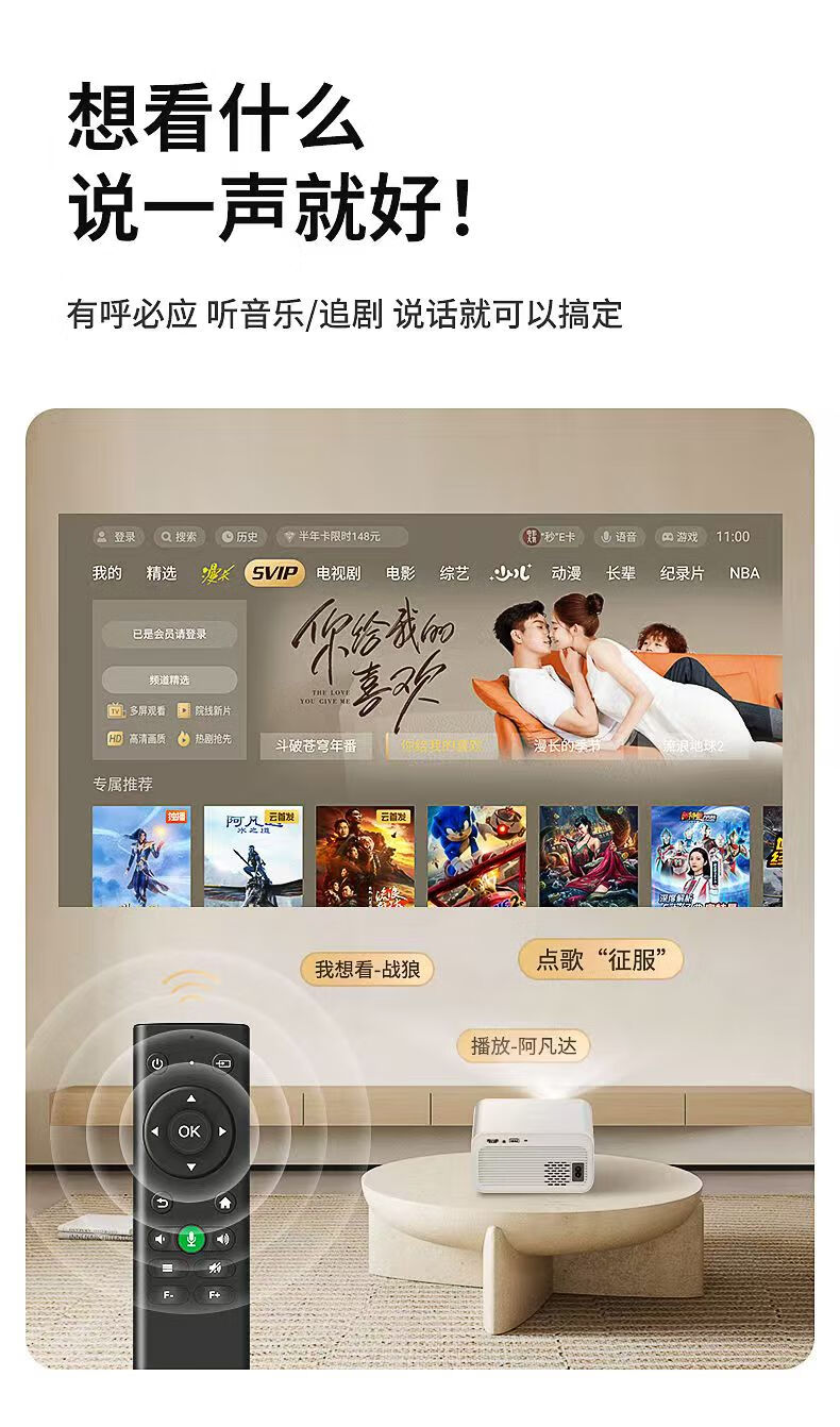 家用投影仪超高清家用卧室家庭影院手机投屏宿舍投屏连5G 2025款超高清满配版【自动对焦+AI声控】