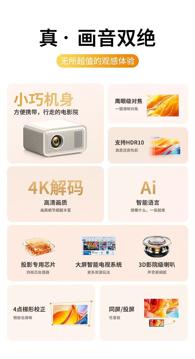 音蜗【IMAX移动影院】智能投影仪超高清白天直投家用家庭影院便携式客 【新品体验.送15天试用送运费险.极速发出】 官方标配 惠享好物投影
