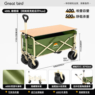 出色鸟Greatbird大型户外露营车 折叠推车野营拖车 摆摊手推车旅行野餐营地车 400L 森林绿 【坦克轮后开+桌板】