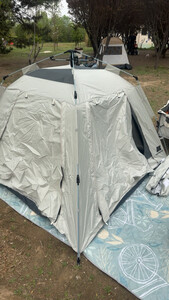 透气效果:四面都有纱窗,透气很好,有两个拉链门 容纳人数:躺两大一小空间挺大的 便携性能:帐篷打开收纳很方便,第一次上手也快,就是天幕搭建要学习一下,也很快