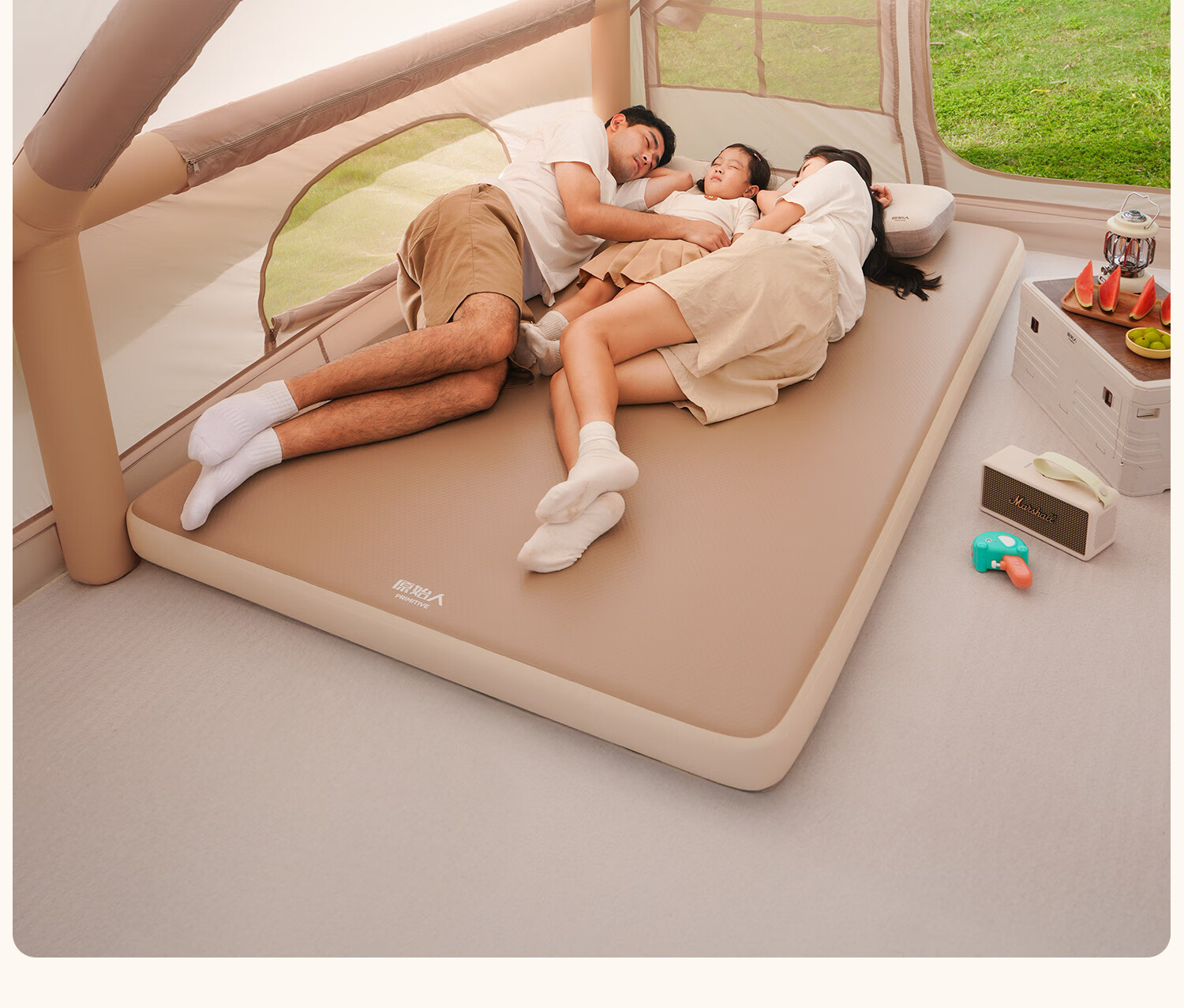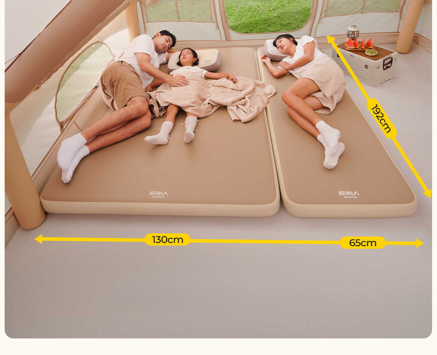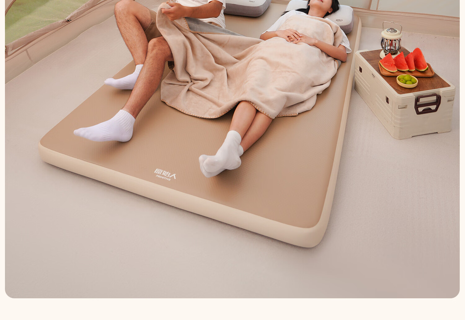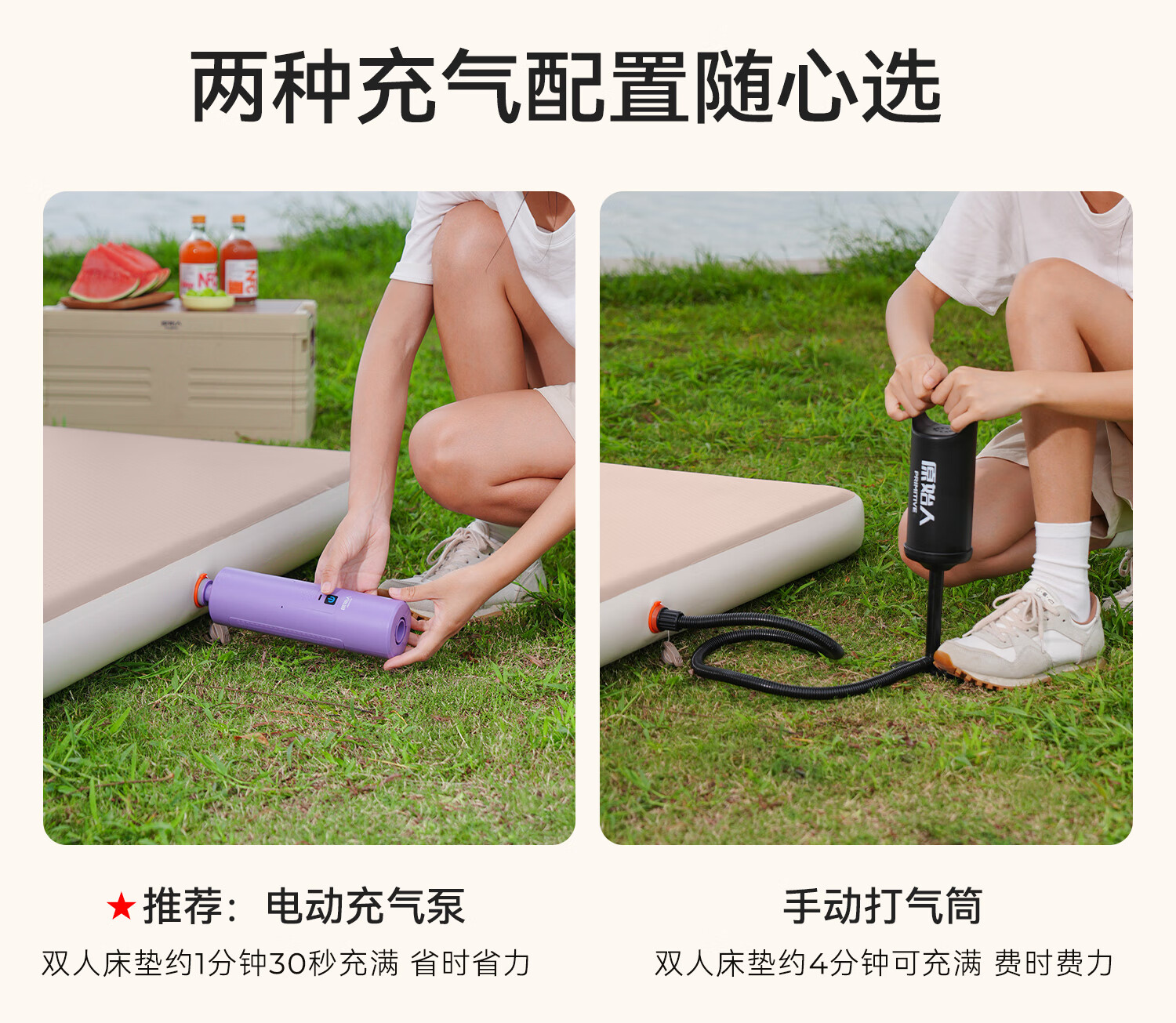 原始人(The Primitive)拉丝充气床垫户外露营便携气垫床打地铺家用自动充气床帐篷睡垫 加厚20CM【双人/电动气泵】赠收纳桶