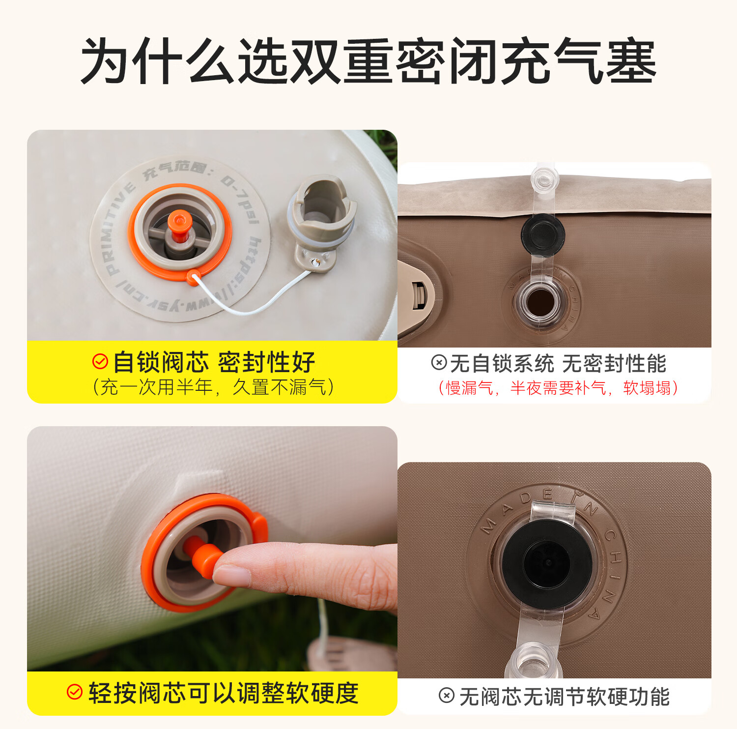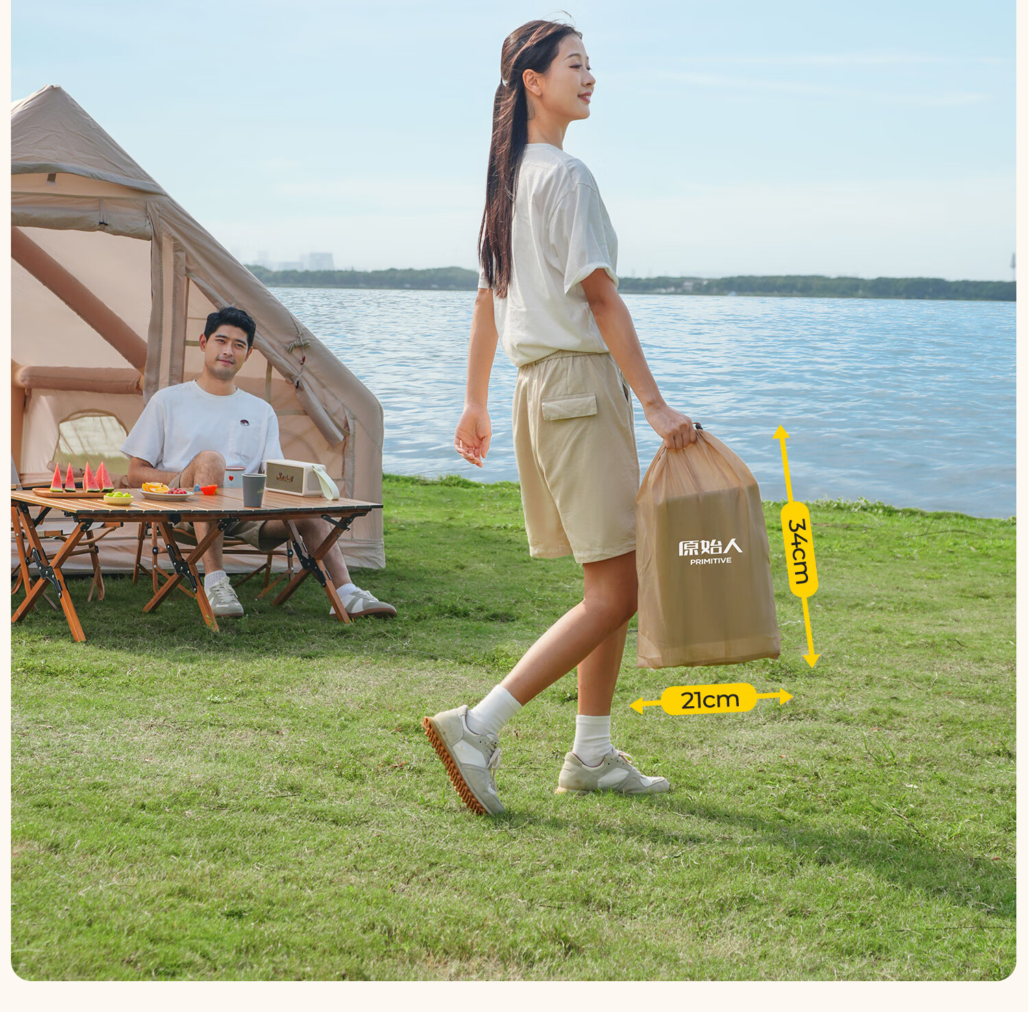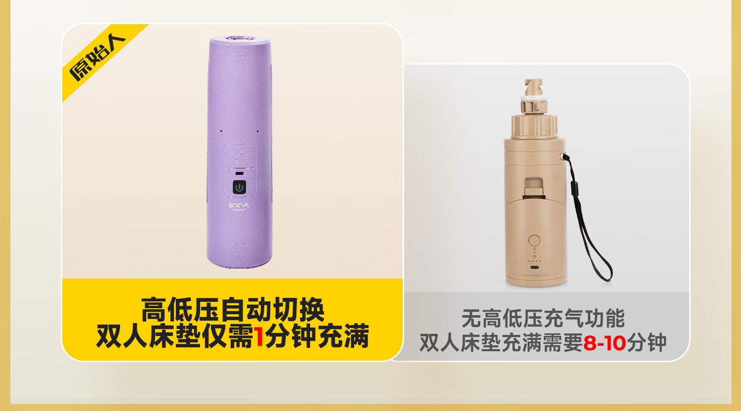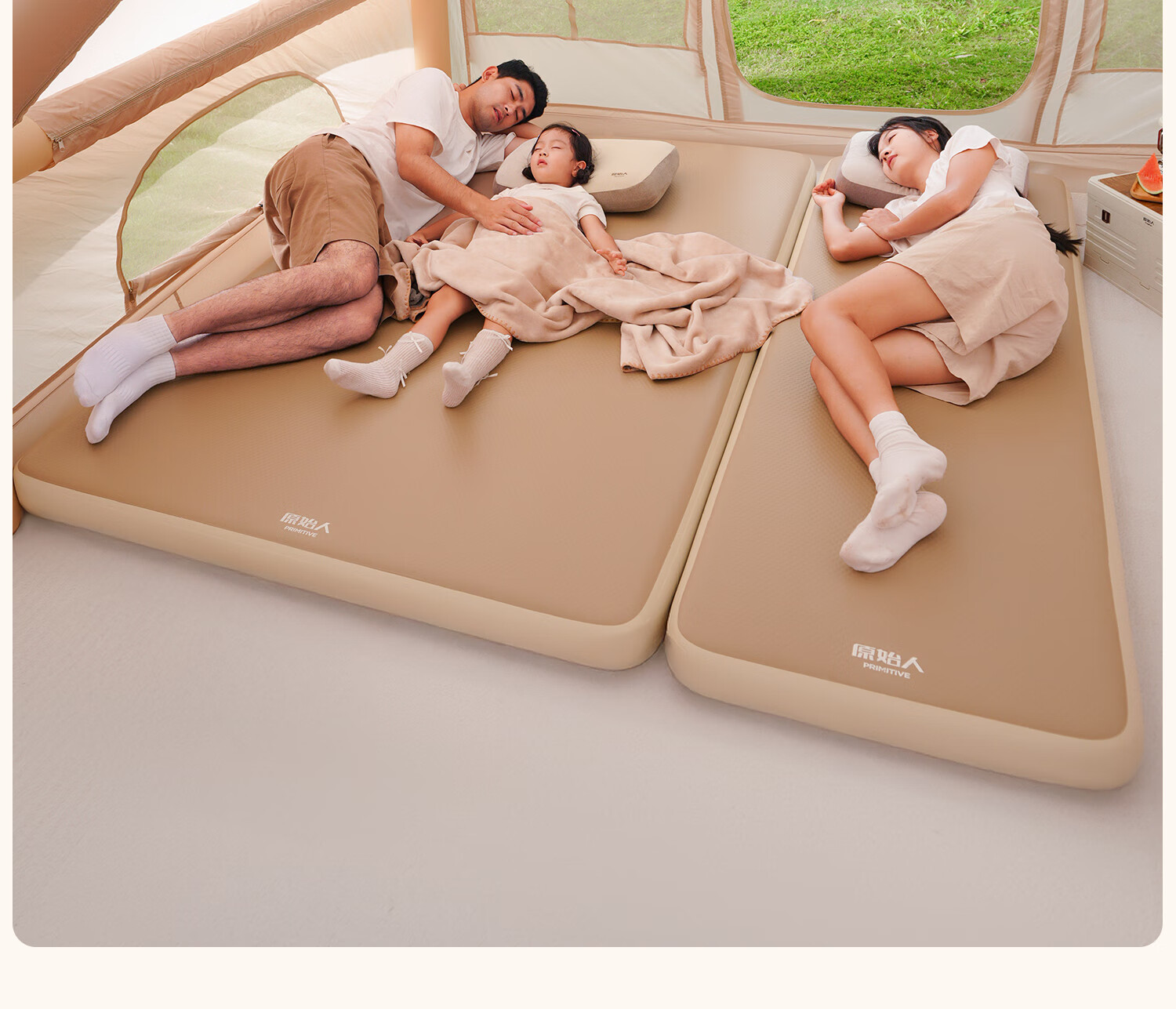 原始人(The Primitive)拉丝充气床垫户外露营便携气垫床打地铺家用自动充气床帐篷睡垫 加厚20CM【双人/电动气泵】赠收纳桶