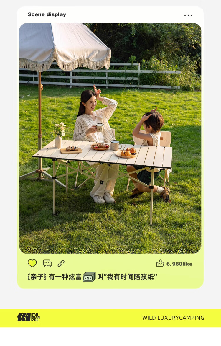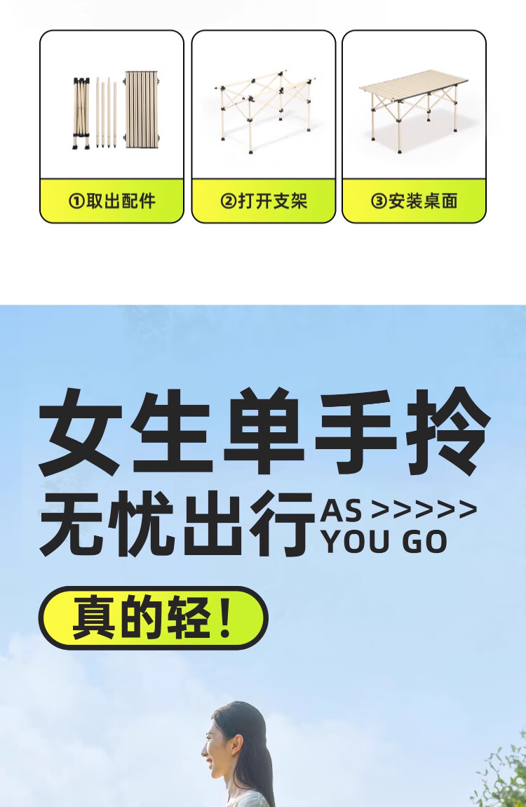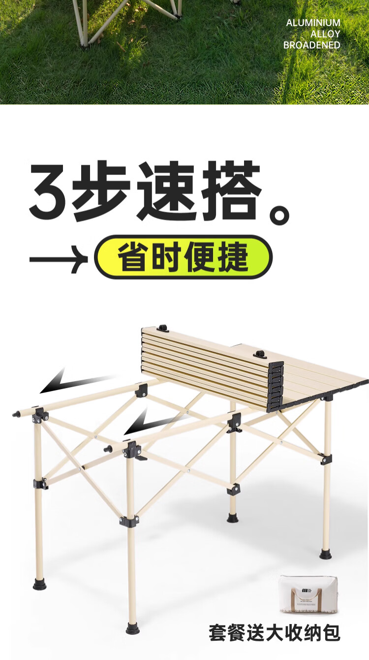 探险者探险者户外桌椅蛋卷桌铝合金全套便携式可折叠野餐露营折叠摆摊桌 【铝合金蛋卷桌中号】含收纳袋
