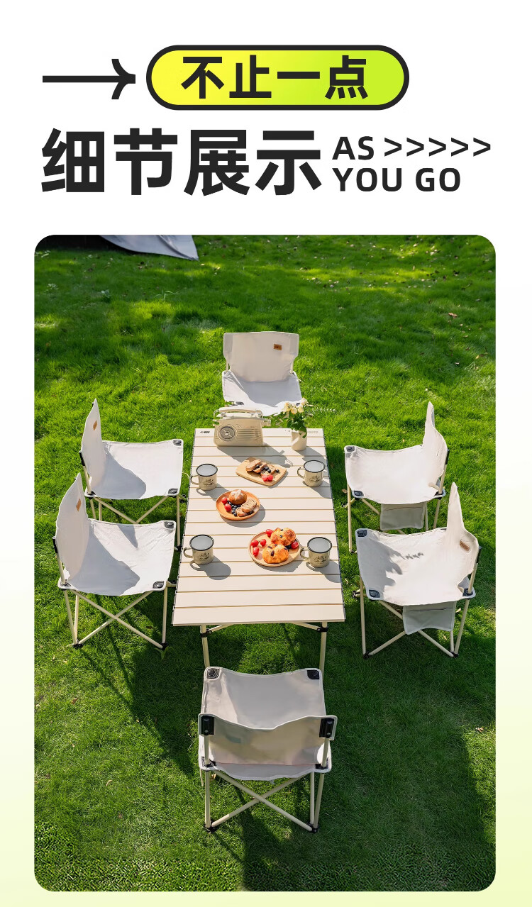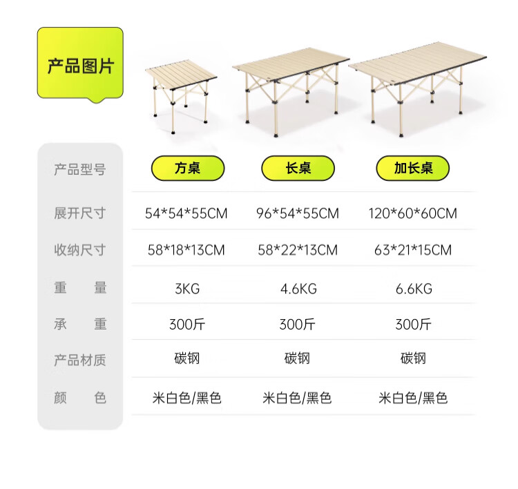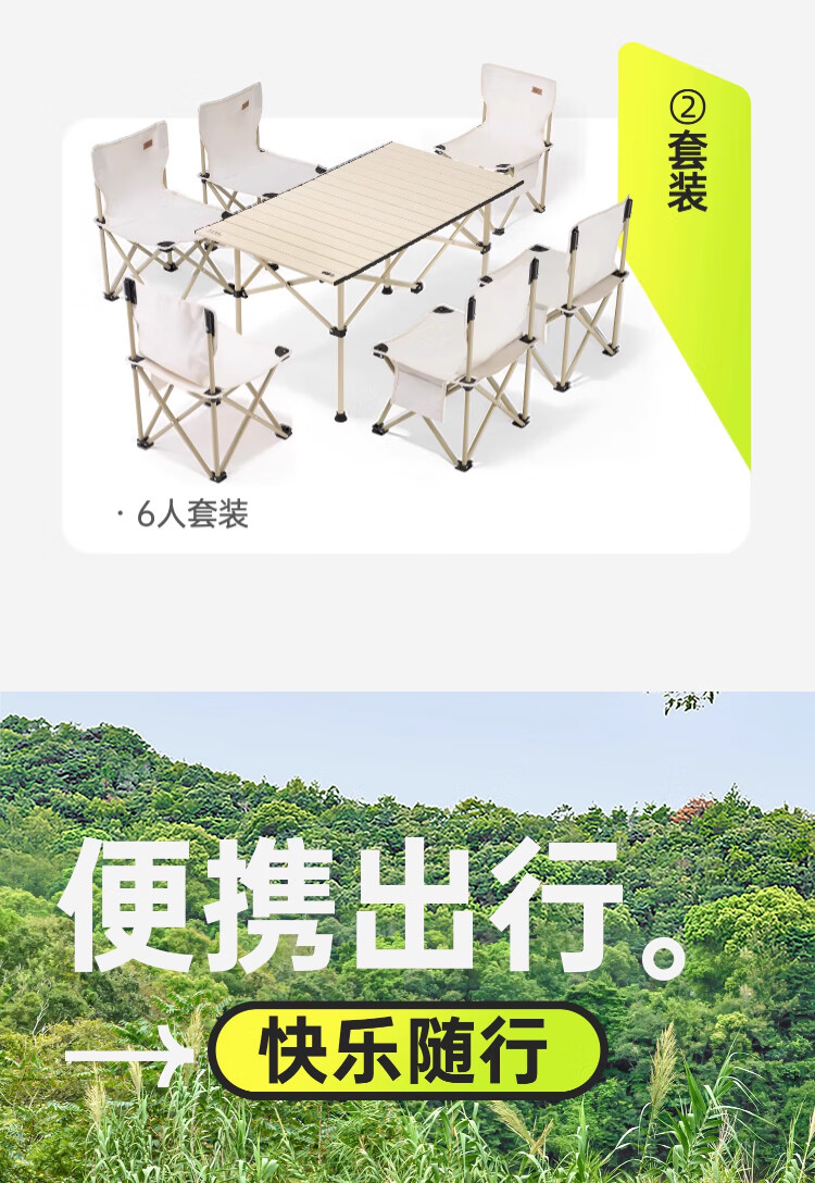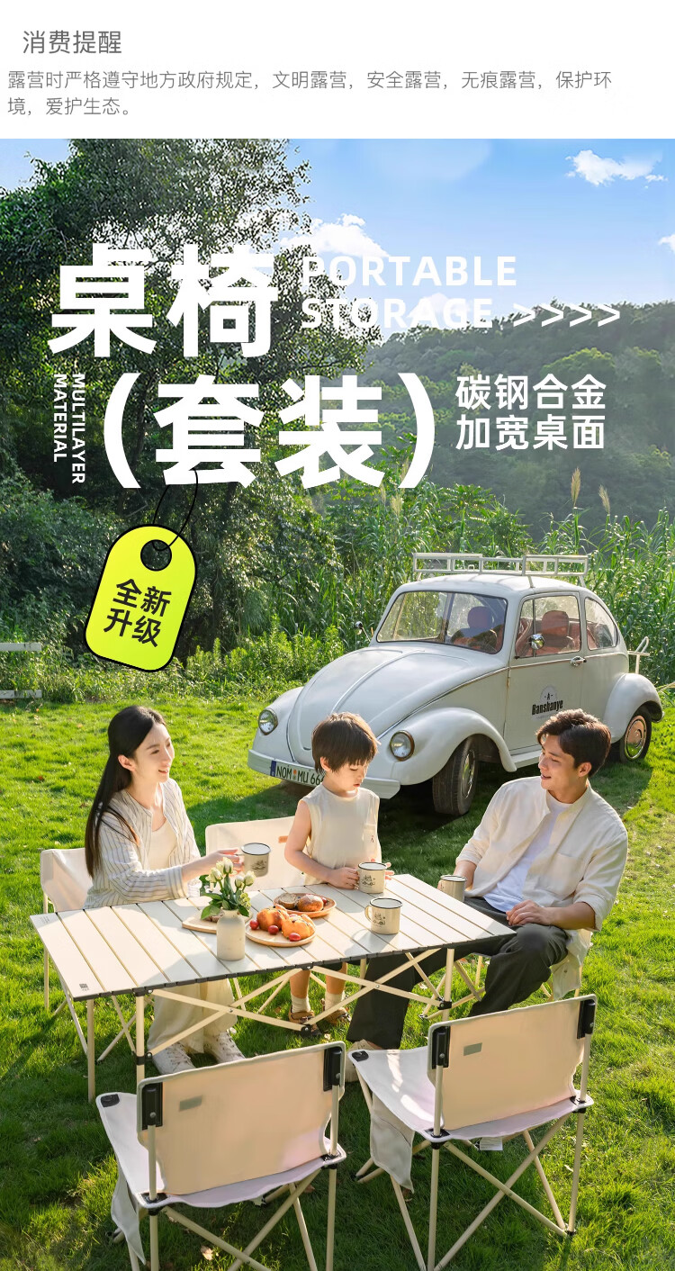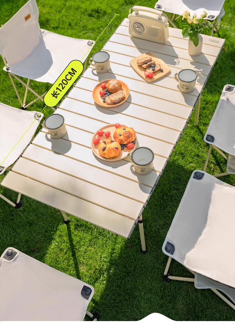 探险者探险者户外蛋卷桌子野营折叠桌子便携式野餐桌椅套装露营用品装备 【4-6人推荐】米白色长桌