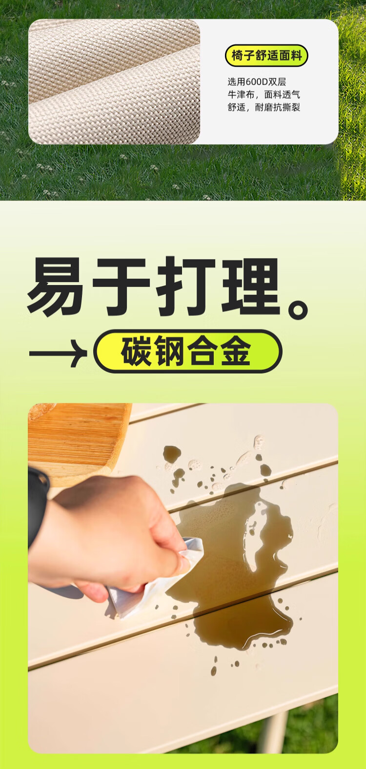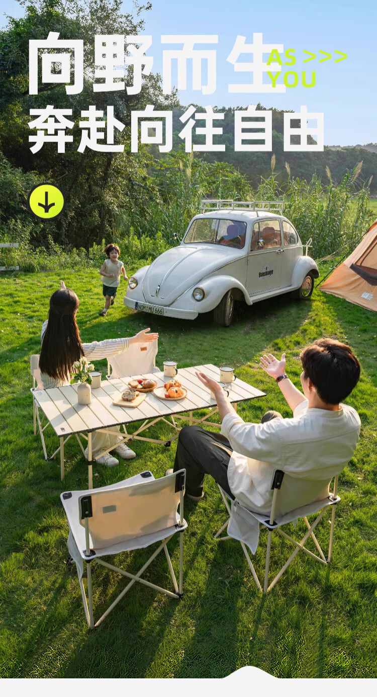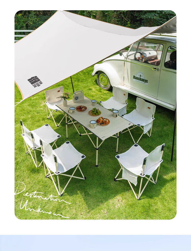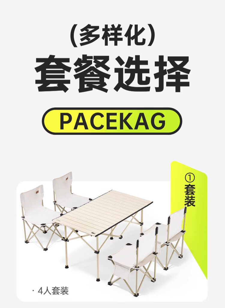 探险者探险者户外蛋卷桌子野营折叠桌子便携式野餐桌椅套装露营用品装备 【4-6人推荐】米白色长桌