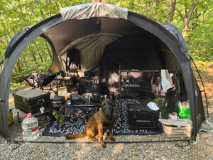 black dog黑狗户外黑胶穹顶天幕露营超大空间防雨野营过夜可拓展组合车尾帐 异想迷城-穹顶帐 展开尺寸:435*435*240cm