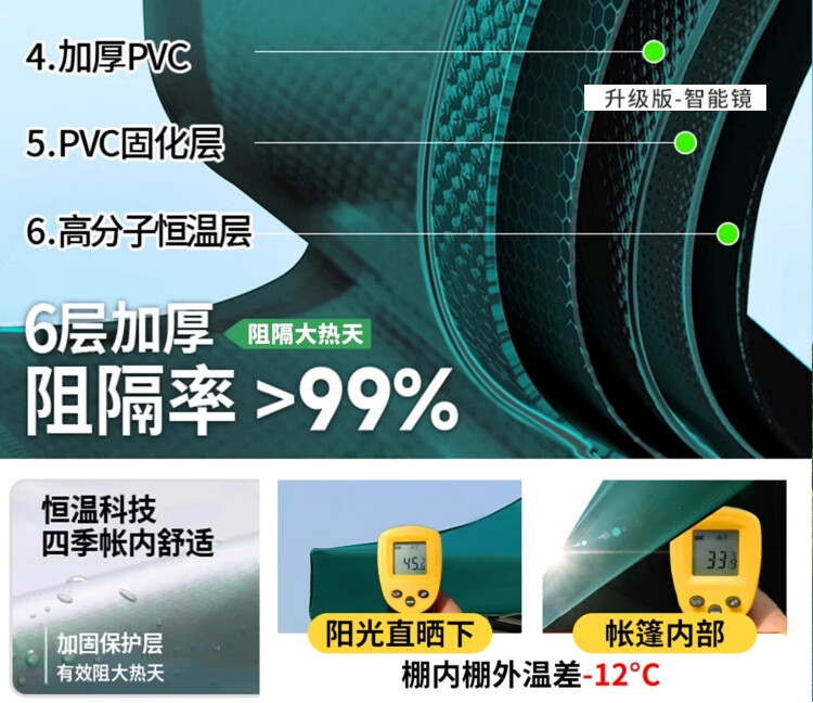 安装这款遮阳棚简单,省力按钮收篷的,操作过程中不担心夹手,四面围起的时候保暖,适合秋冬季节使用,三档可升降高度随意伸缩,帐篷高度可拉伸,可根据自己的需求调节适合的高度。