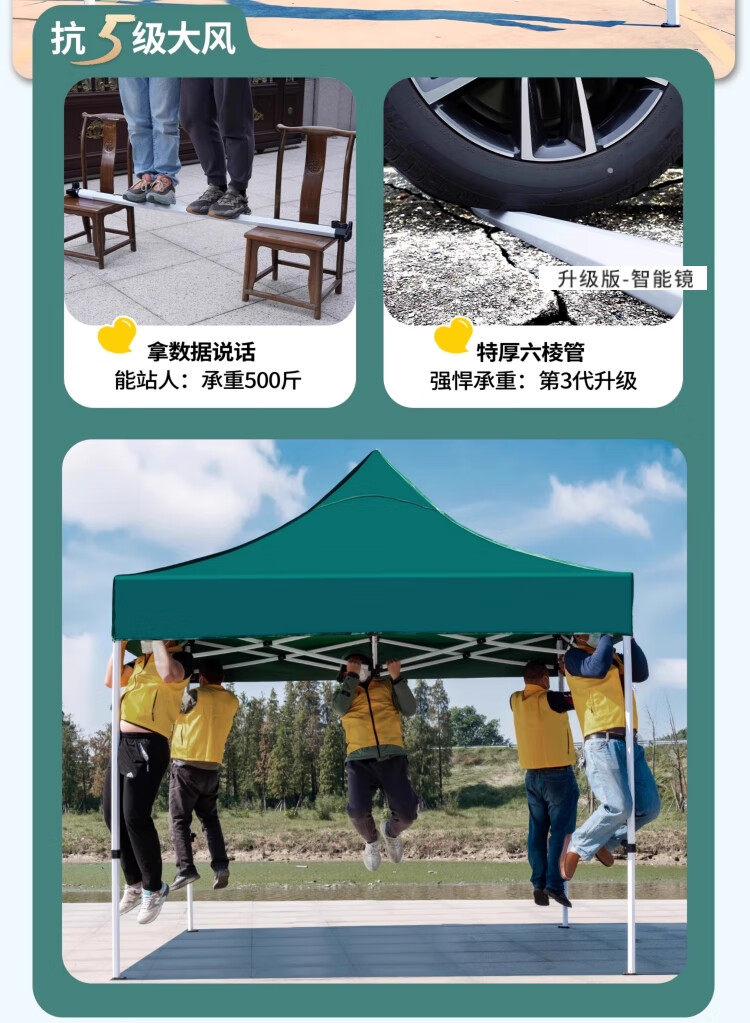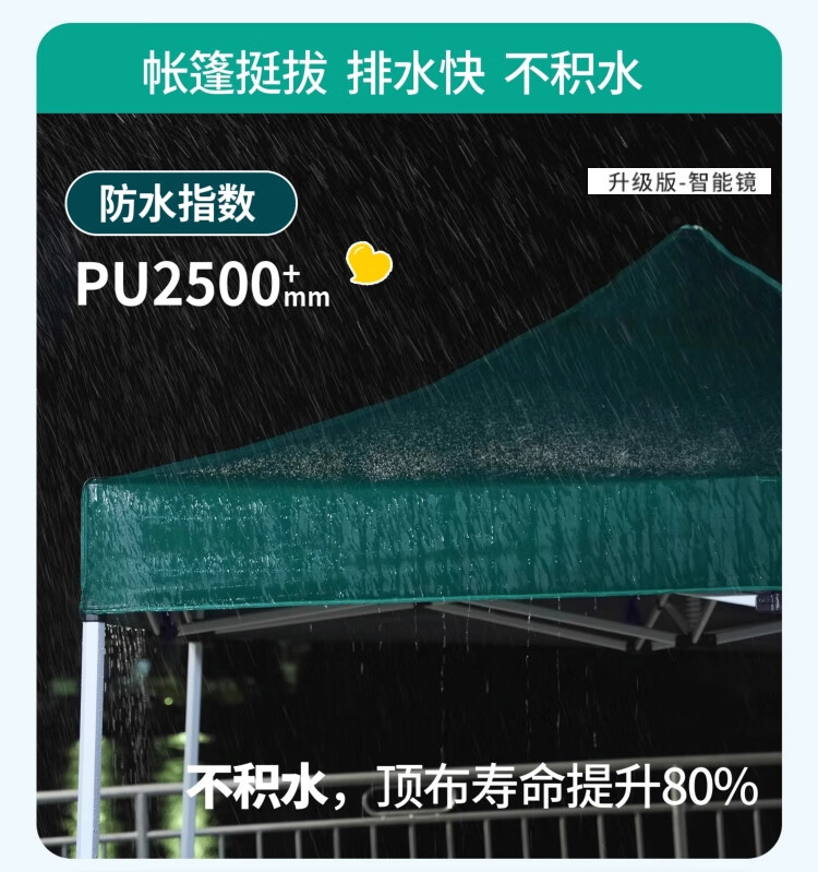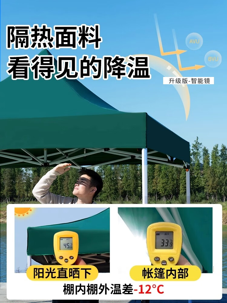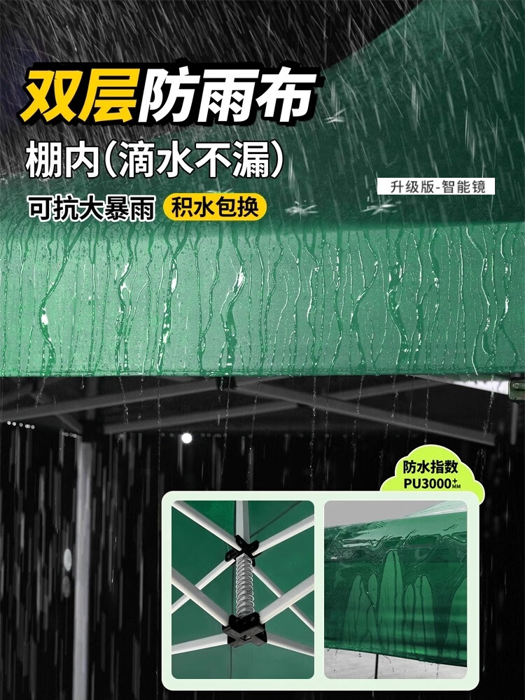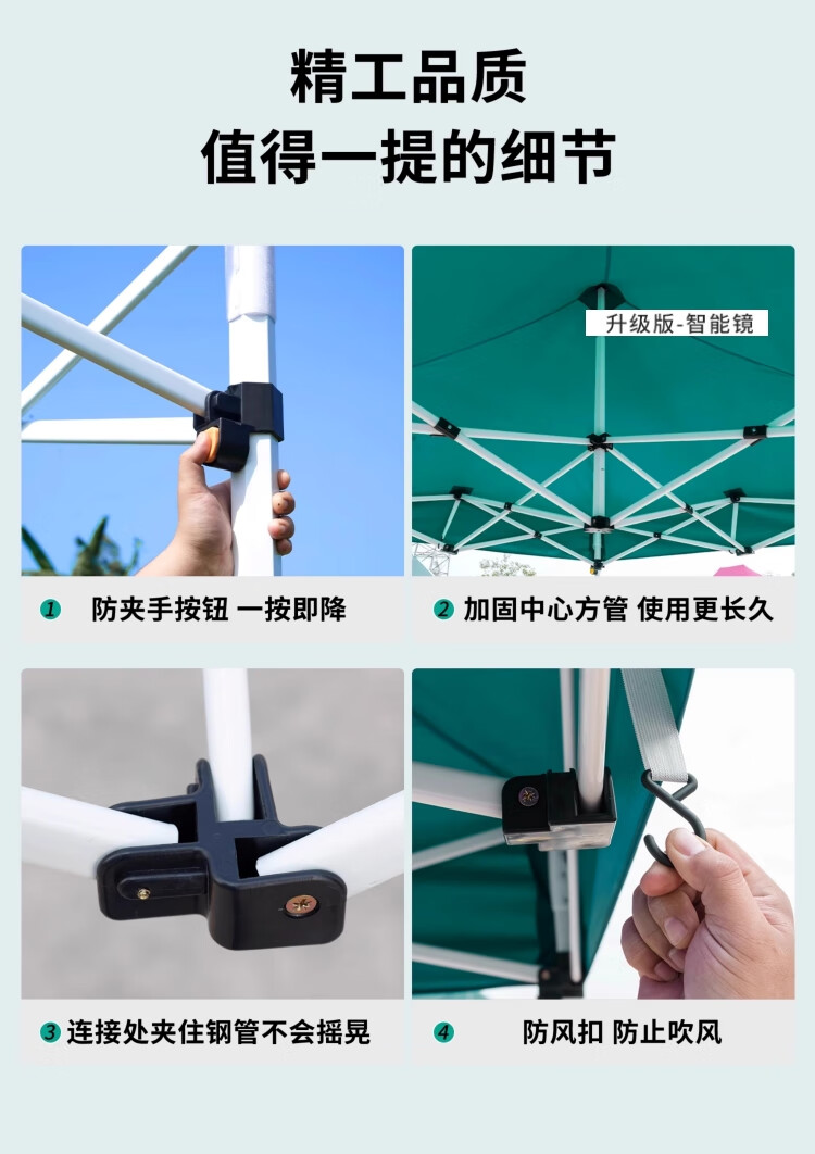 遮阳棚套上顶布直接打开一人可完成,自动架大按钮省时省力不伤手,防积水大弹簧设计,下雨后顶棚能回弹水珠快速滑落,隔热面料棚内不闷热,双层防雨布棚内滴水不漏,免安装折叠不占空间,放进后备箱或角落都方便,三档可随意升降高度,拉到最高时活动空间大,调中档降低受风面,收最低节省占地,可根据自己的需求调节适合的高度,自动架大按钮一按就升,省力又安全防夹手按钮一按即降,收放都安心,多种款式可选,总会有一款适合户外使用。