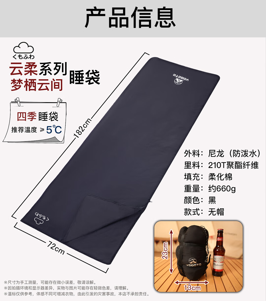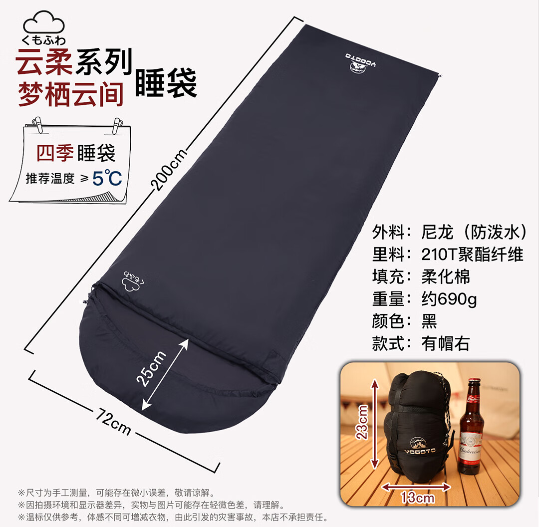 YOGOTO户外迷你四季可拼接超柔棉睡袋信封式内胆超轻款新钓鱼 云柔-无帽款