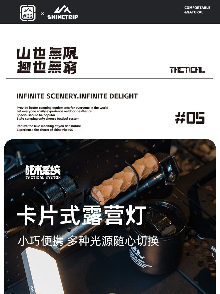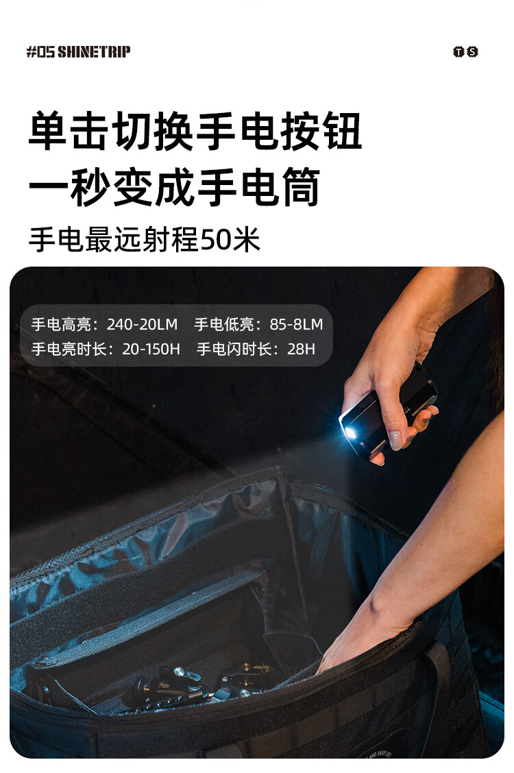 山趣(ShineTrip)卡片式战术磁吸露营灯户外徒步长续航野营灯帐篷氛围照明灯 ST-卡片式露营灯-逐幕黑