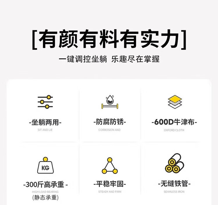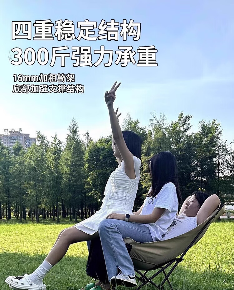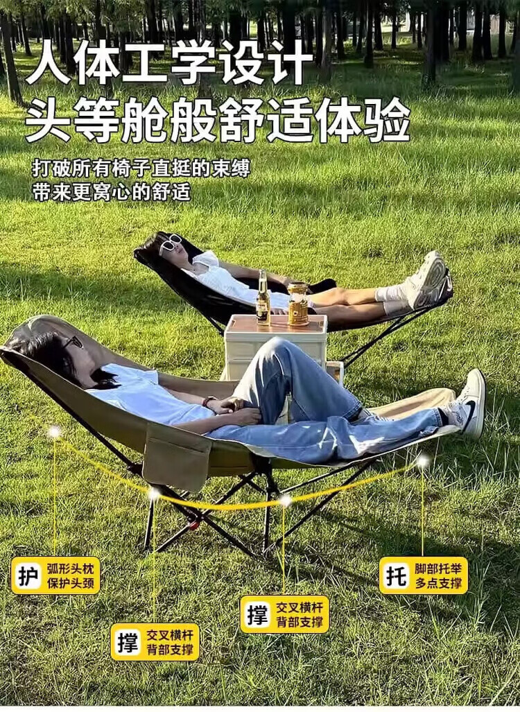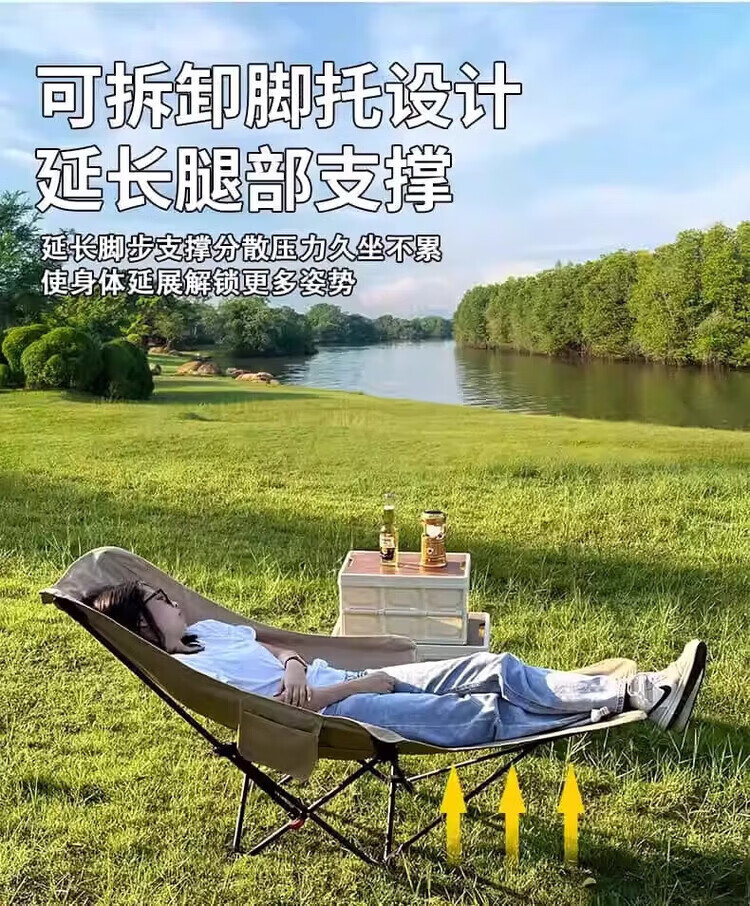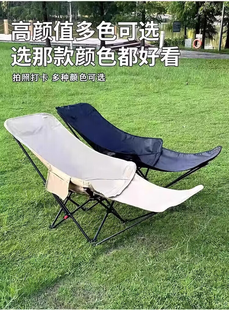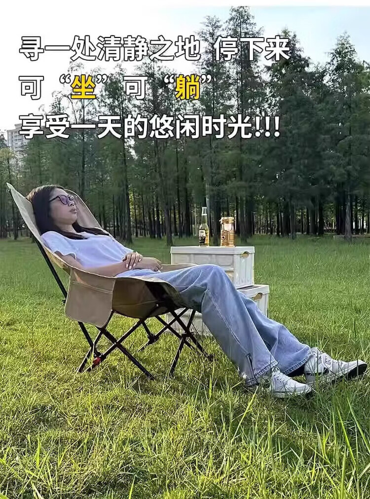 这款可调节月亮椅真的是办公 + 户外双场景的宝藏!可坐可躺的设计太懂打工人和露营党了,三档调节靠背,办公室午休调到平躺模式,搭配可拉伸的腿拖,完全不用蜷着睡,腰背贴合得特别好,一觉起来腰不酸背不疼。露营时半躺模式看风景,加高靠背能稳稳托住肩颈,久坐也不累。加厚钢管支架超稳固,承重完全没问题,底部防滑脚垫在草地、瓷砖上都不打滑。折叠后超轻便,塞进后备箱或办公桌下都不占地方,牛津布面料耐磨又防水,擦一擦就能用。带腿拖的设计太加分,把脚架起来彻底放松,不管是办公室补觉还是户外露营,都能躺得舒舒服服,性价比绝了!