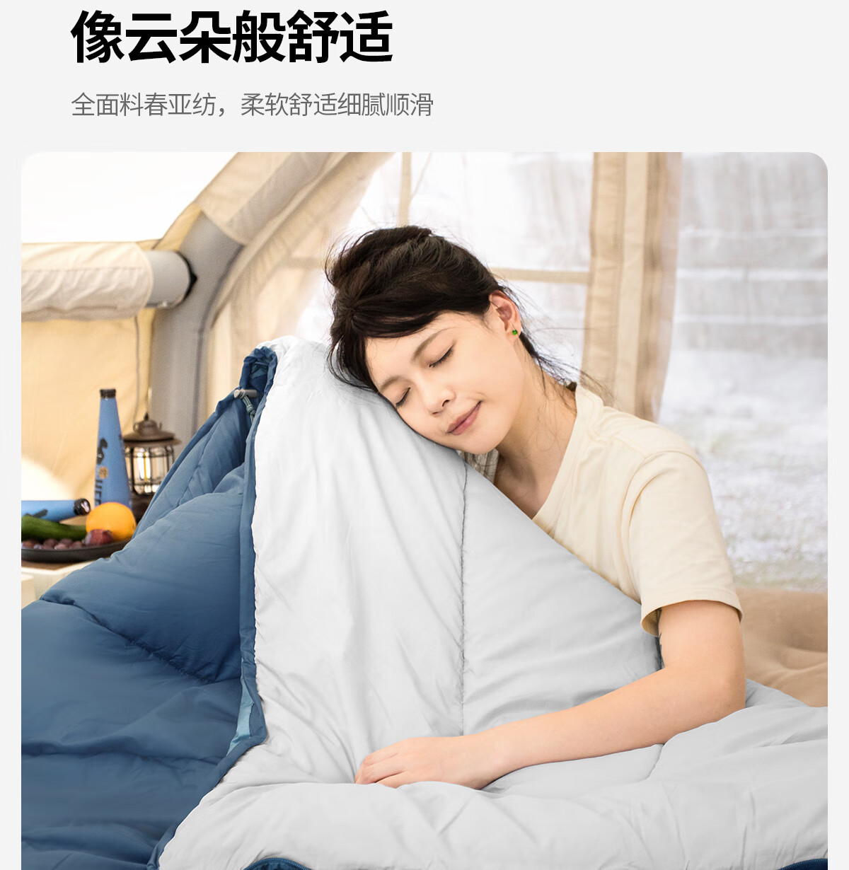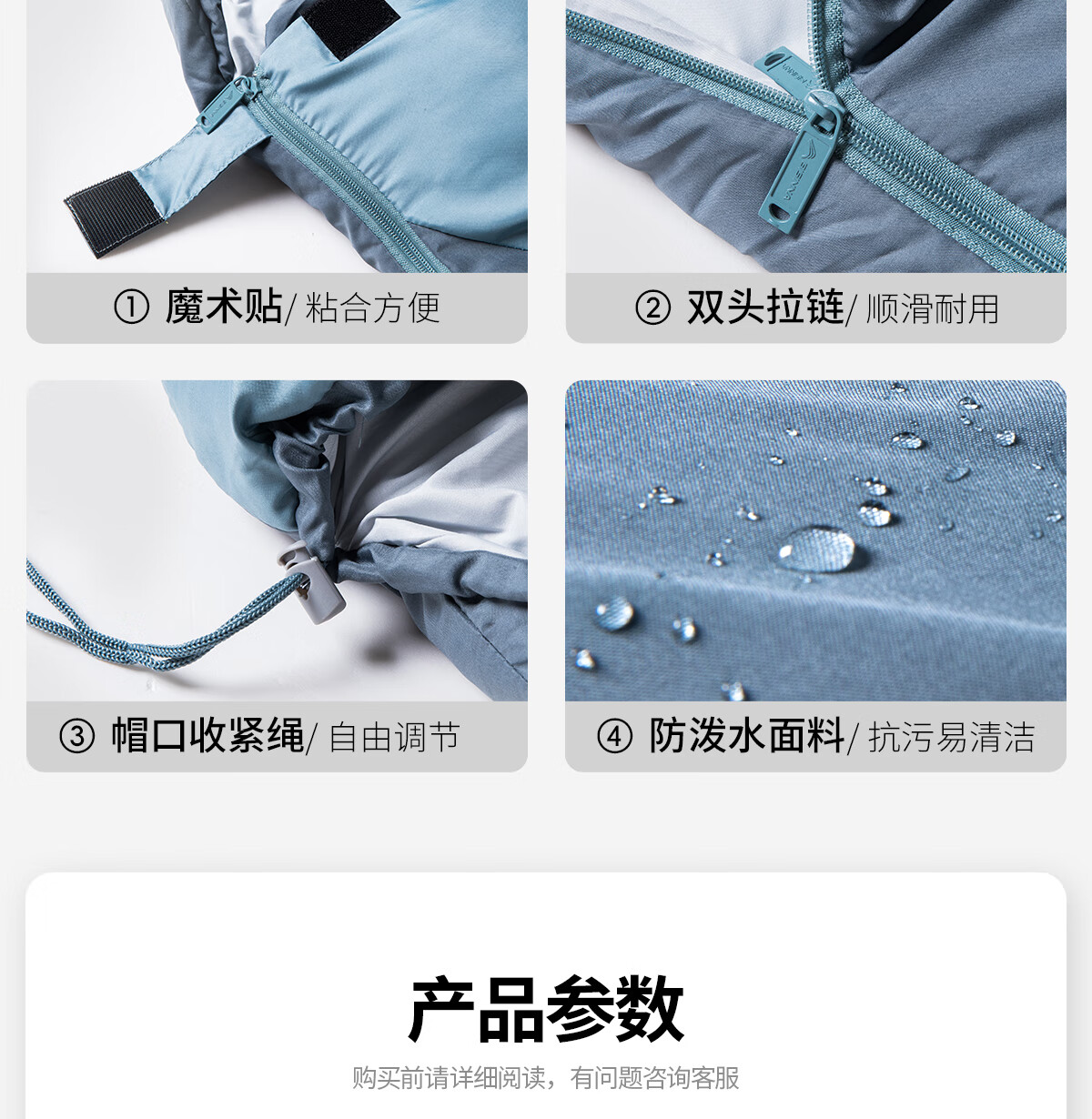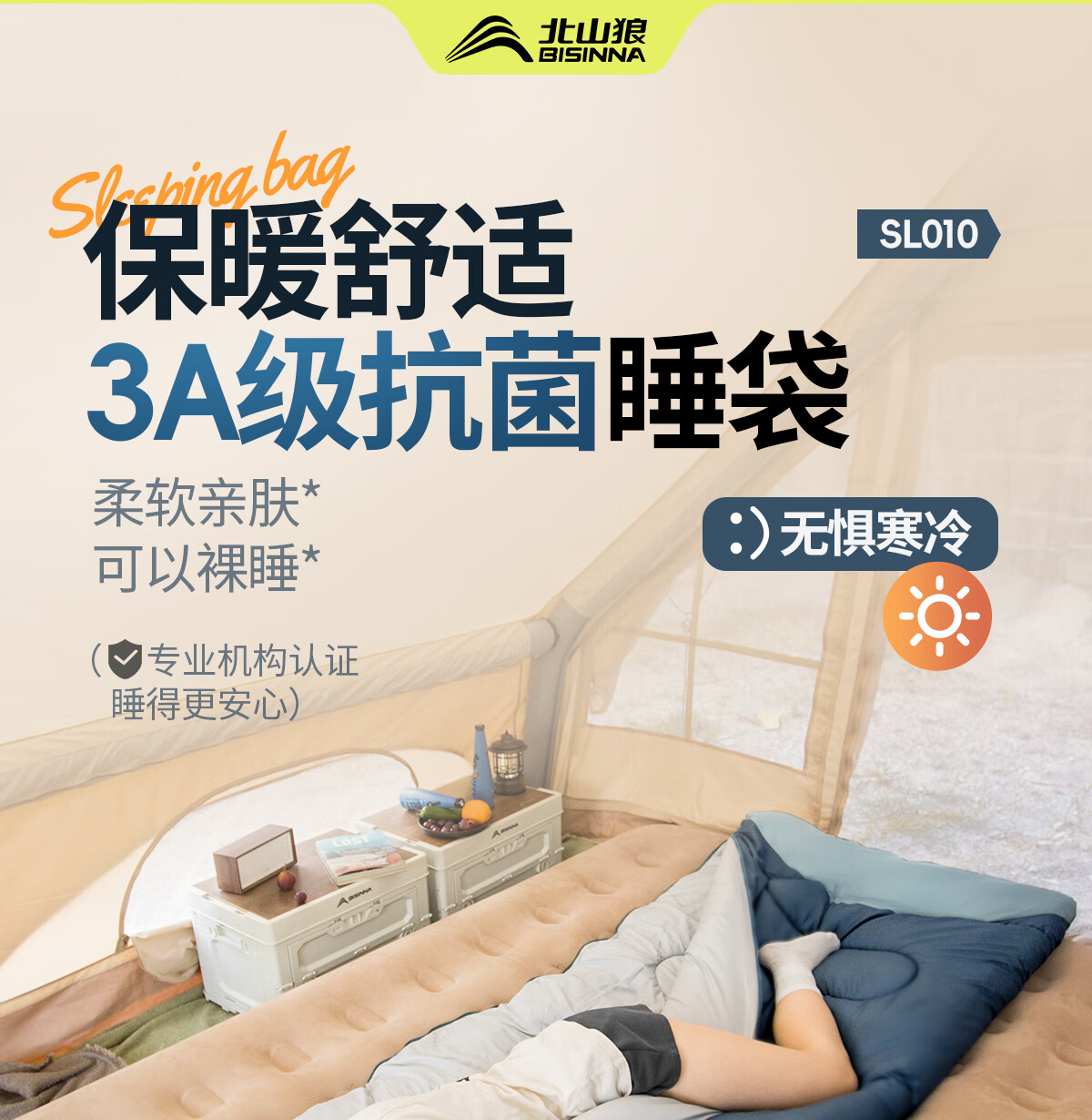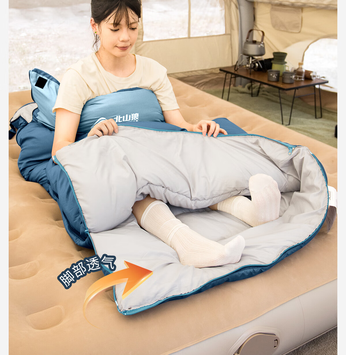 北山狼 户外睡袋成人露营四季款 大人便携式双人被子两用 1.35kg山影青(抗菌款)-【适温10~15℃】