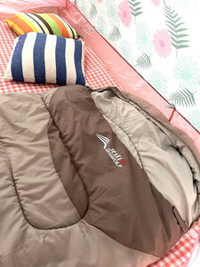户外露营这个睡袋很好,拿出来很大,装起很小,广,方便外出。