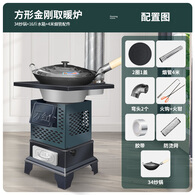 取暖炉家用室内烧柴火煤炭两用农村户外冬天无烟新型移动铸铁灶台 方金刚取暖炉+34炒锅4米烟管配件