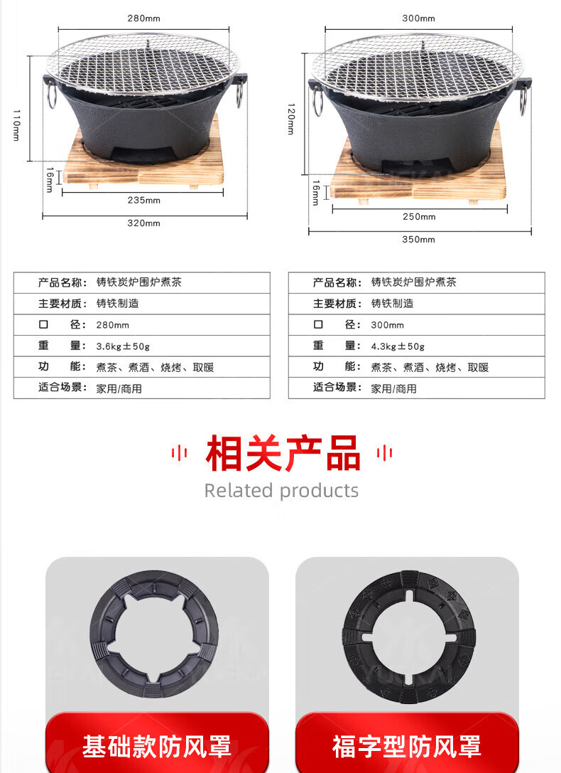 MPPMCK围炉煮茶铸铁碳炉家用烧水取暖 140*140*3mm单炉