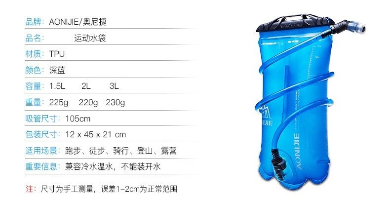 奥尼捷水袋户外骑行运动跑步越野马拉松饮水补水囊装备 蓝色 1.5L