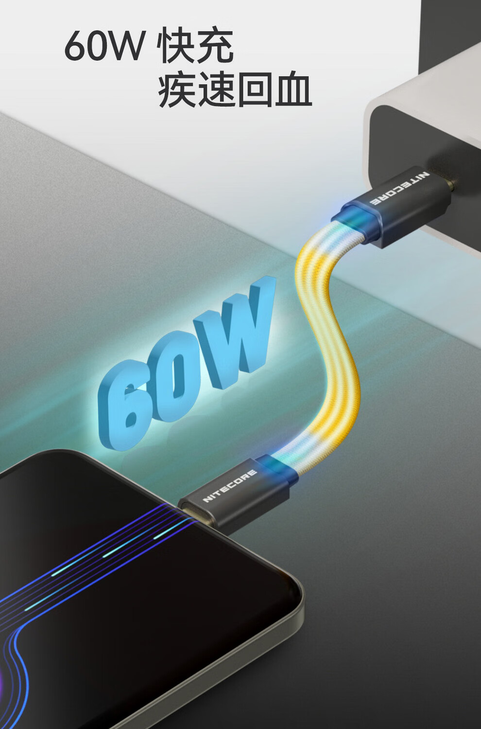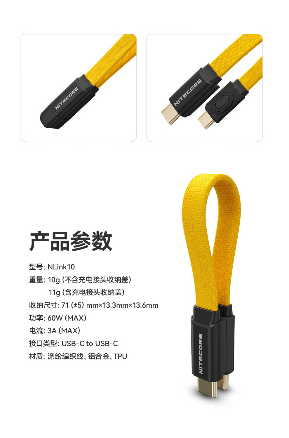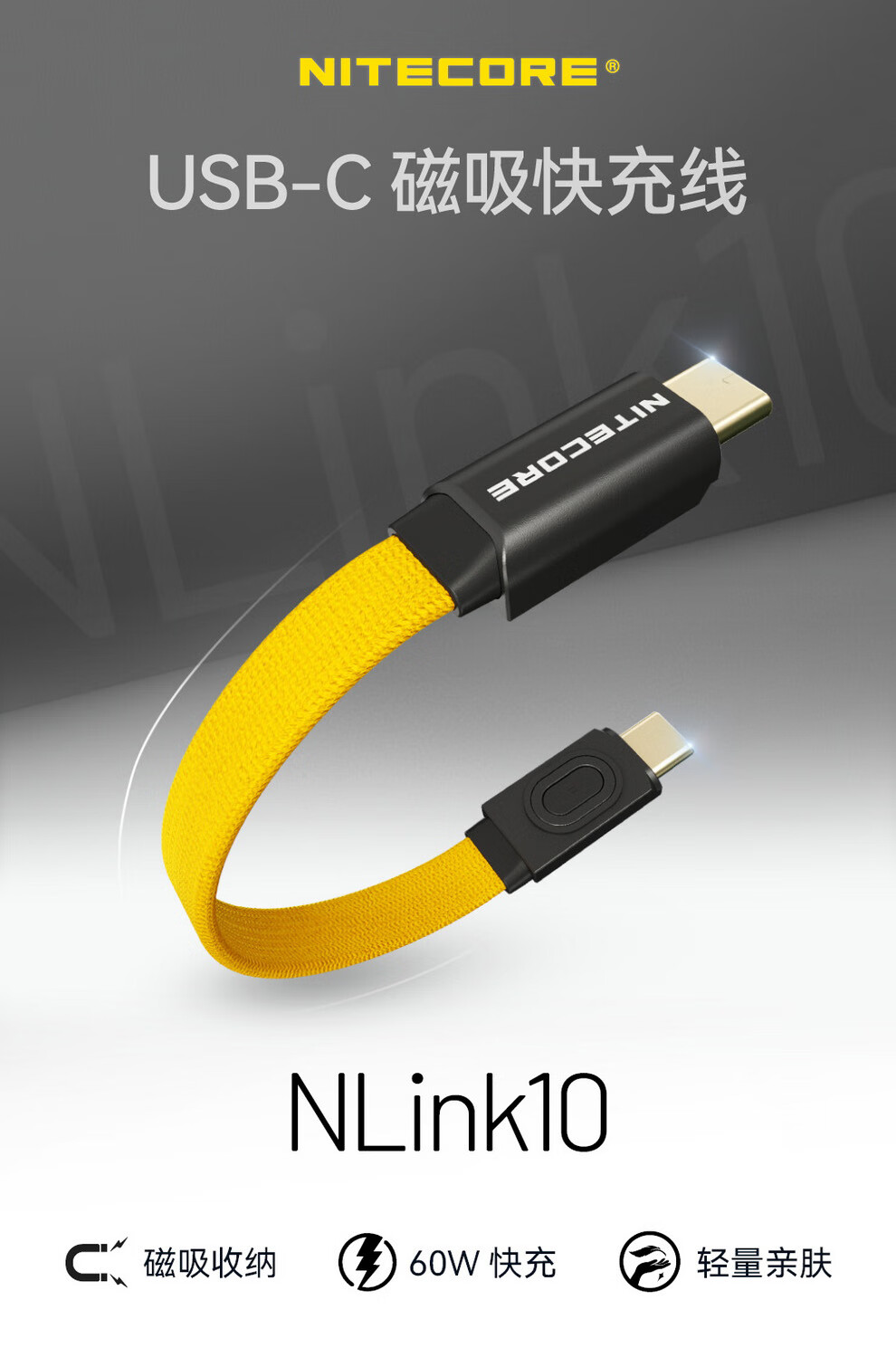 奈特科尔(NITECORE)Nlink10磁吸快充线极短款充电线60W快充双USB-C口数据线便携收纳 Nlink10磁吸快充线(双C接口)