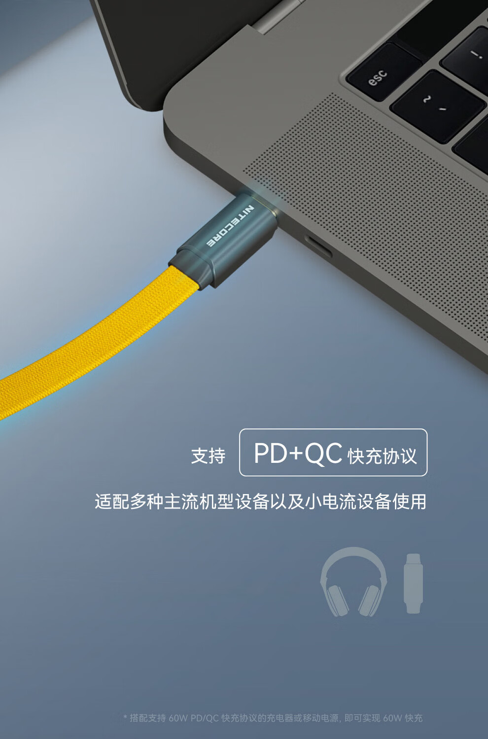 奈特科尔磁吸60W快充数据线7cm长度 C to C数据线【磁吸-60W快充】
