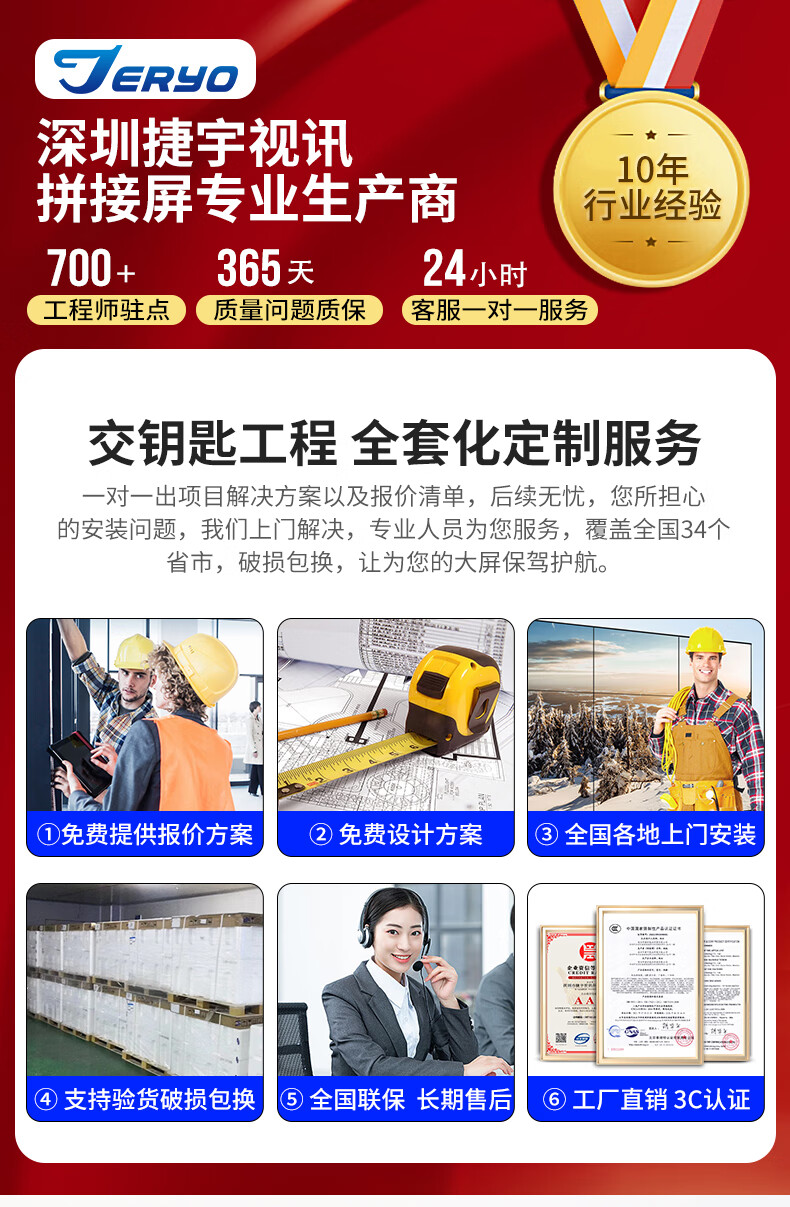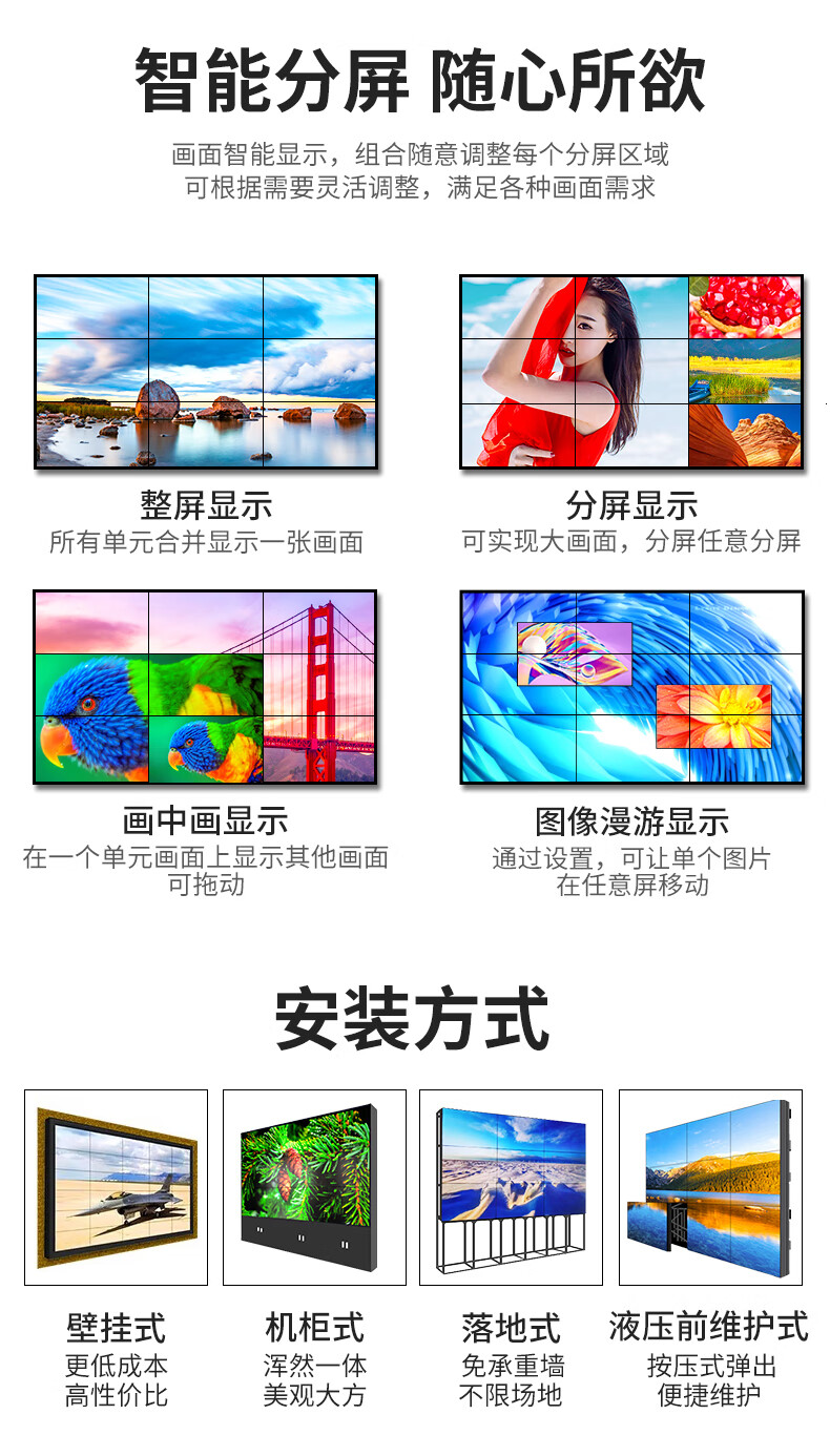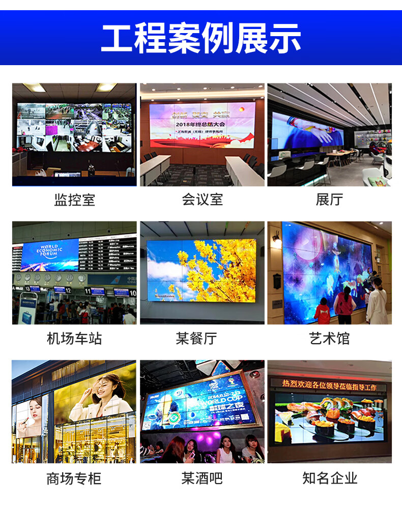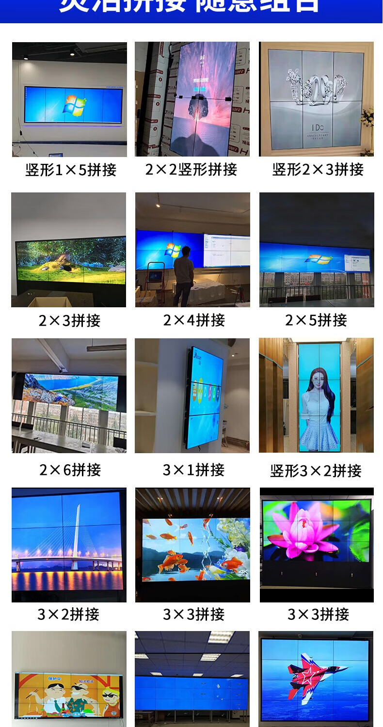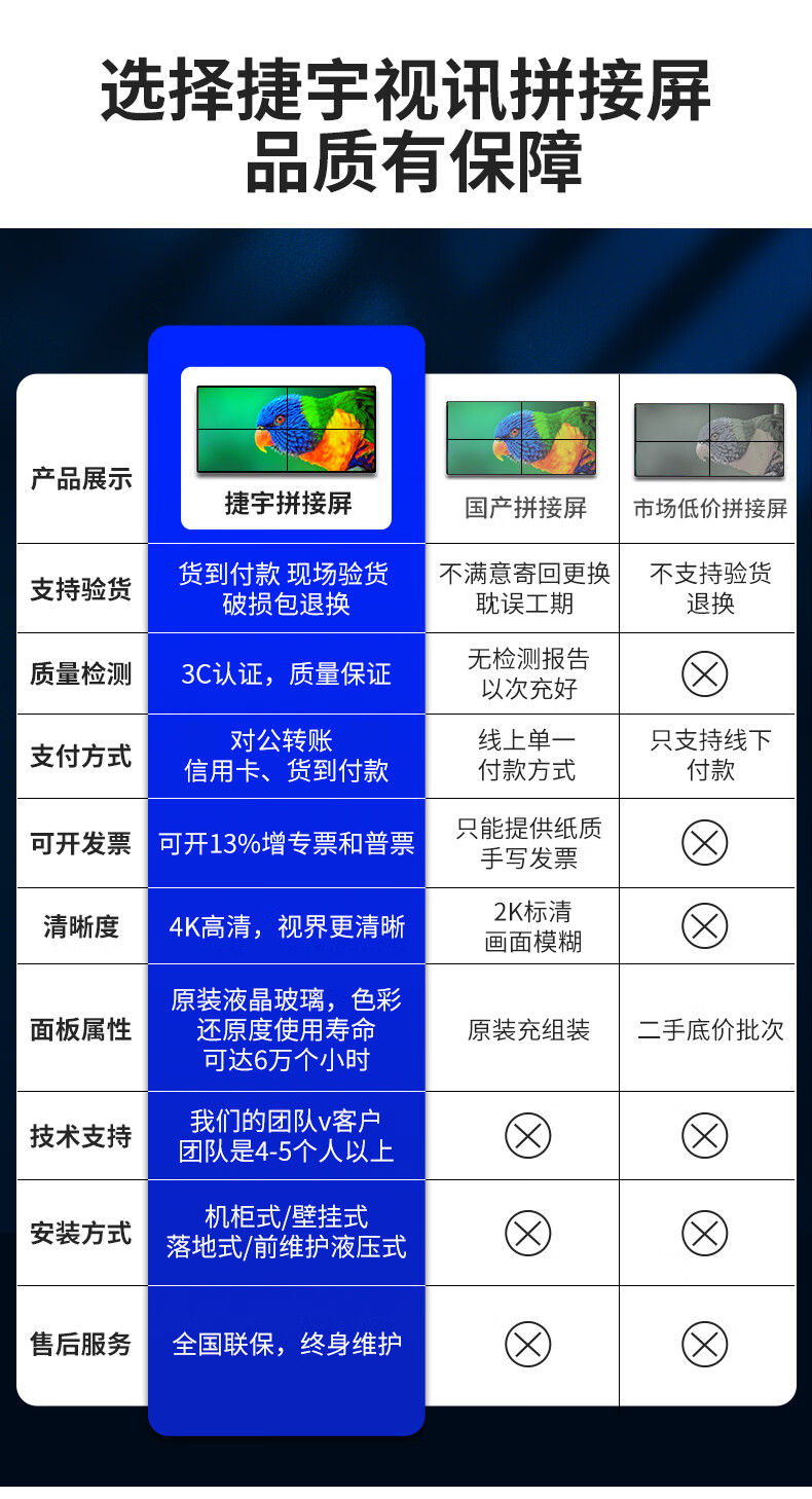 捷宇视讯 LCD高清液晶拼接屏 安防监控显示器 展厅 直播间 会议室 商用办公大屏幕 室内 拼接屏液压支架
