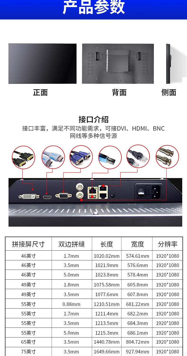 dxun缔讯 液晶拼接屏大屏幕 会议室电视墙监控显示器 55英寸0.88mm拼缝