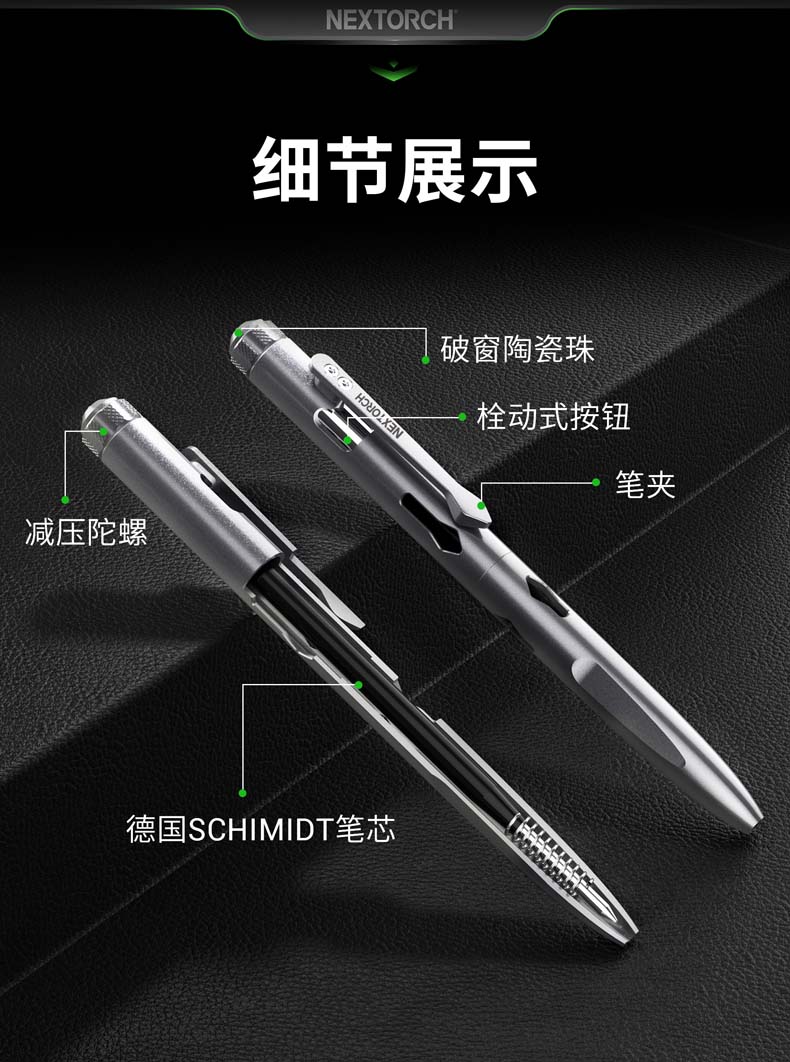奈特科尔 NTP30钛合金书写紧急破窗防卫多功能户外edc战术笔 NTP30钛合金战术笔