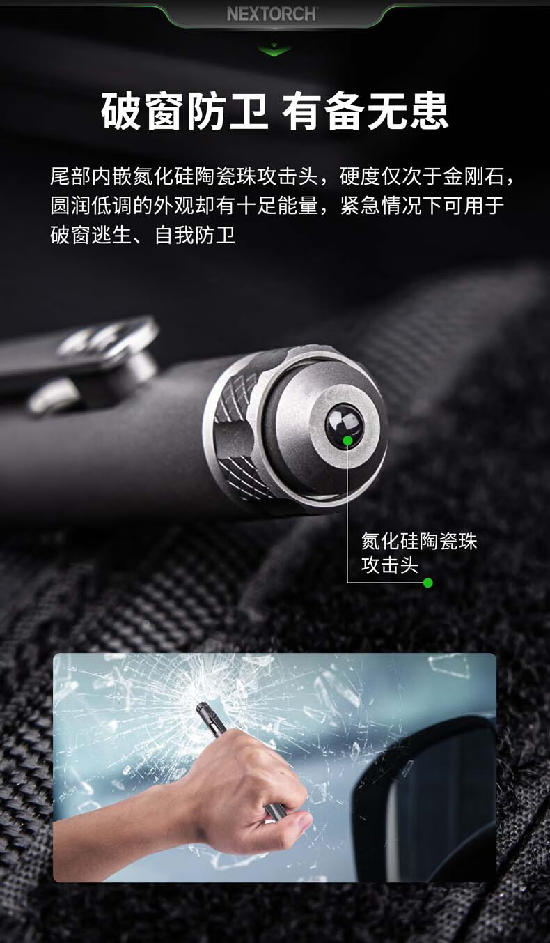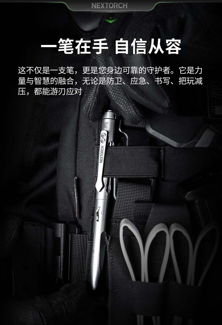 纳丽德(NEXTORCH)4Tool系列TP20钛合金战术笔多功能便携签字笔车载应急破窗工具 TP20钛合金战术笔