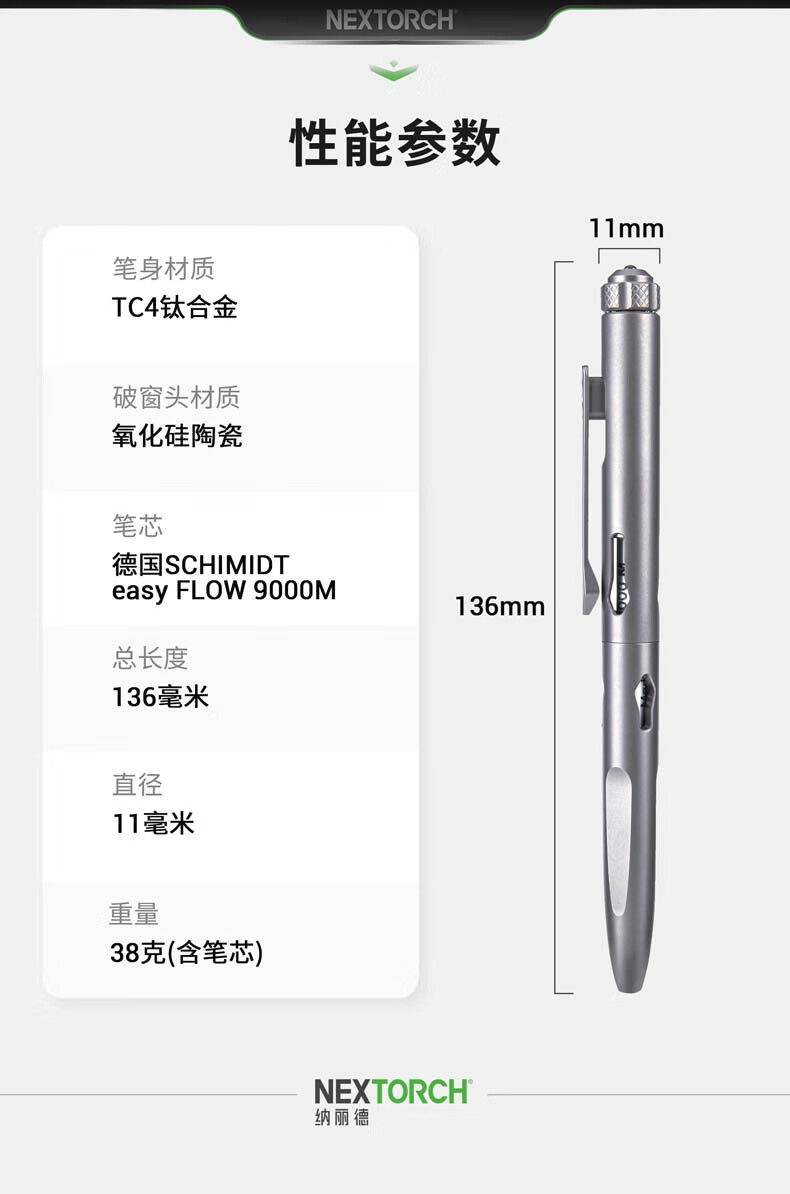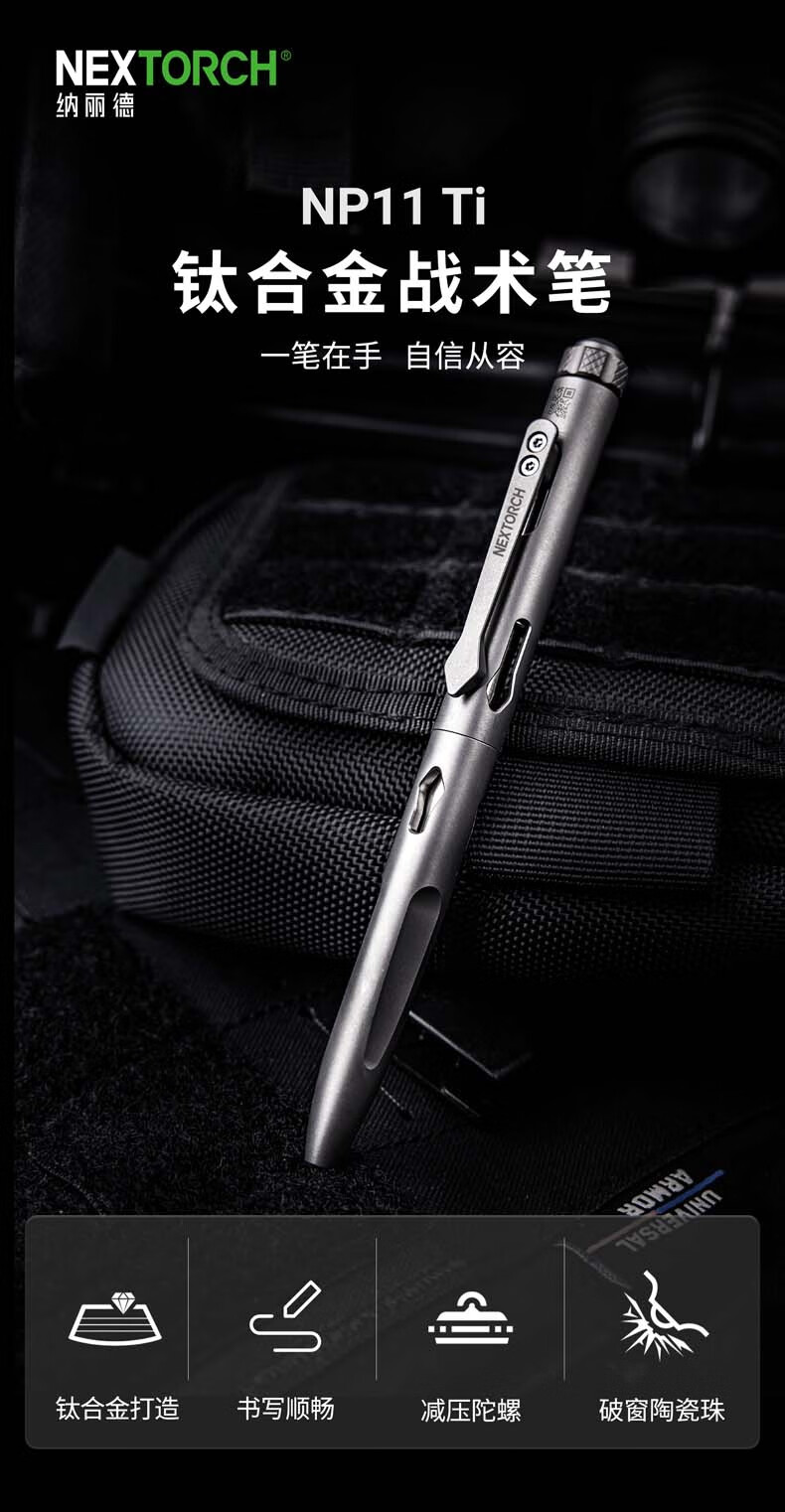 纳丽德纳丽德NP11钛合金战术笔防卫笔减压破窗防身装备防狼便携edc NP11 TI标配(赠额外一支笔芯)