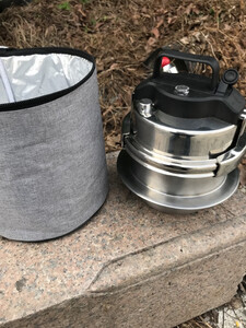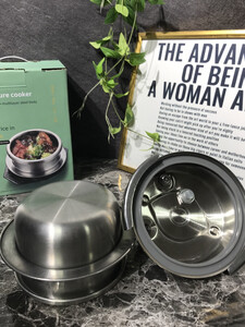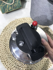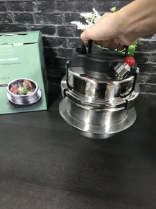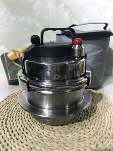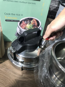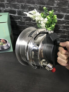 这款锅全不锈钢打造,锅壁锅底都很厚,更容易加热,旋钮开盖,卡扣严实,开启自如,看了一下说明书,操作简单,跟老款高压锅差不多,目前刚收到货,还没使用,手感很不错,带到户外也很方便,商家配有袋子,很周到了.