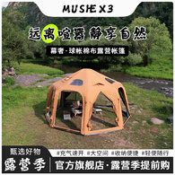 幕奢mushe-X3球型帐篷19㎡超大空间露营棉布充气帐篷加高防雨活地布 卡其色