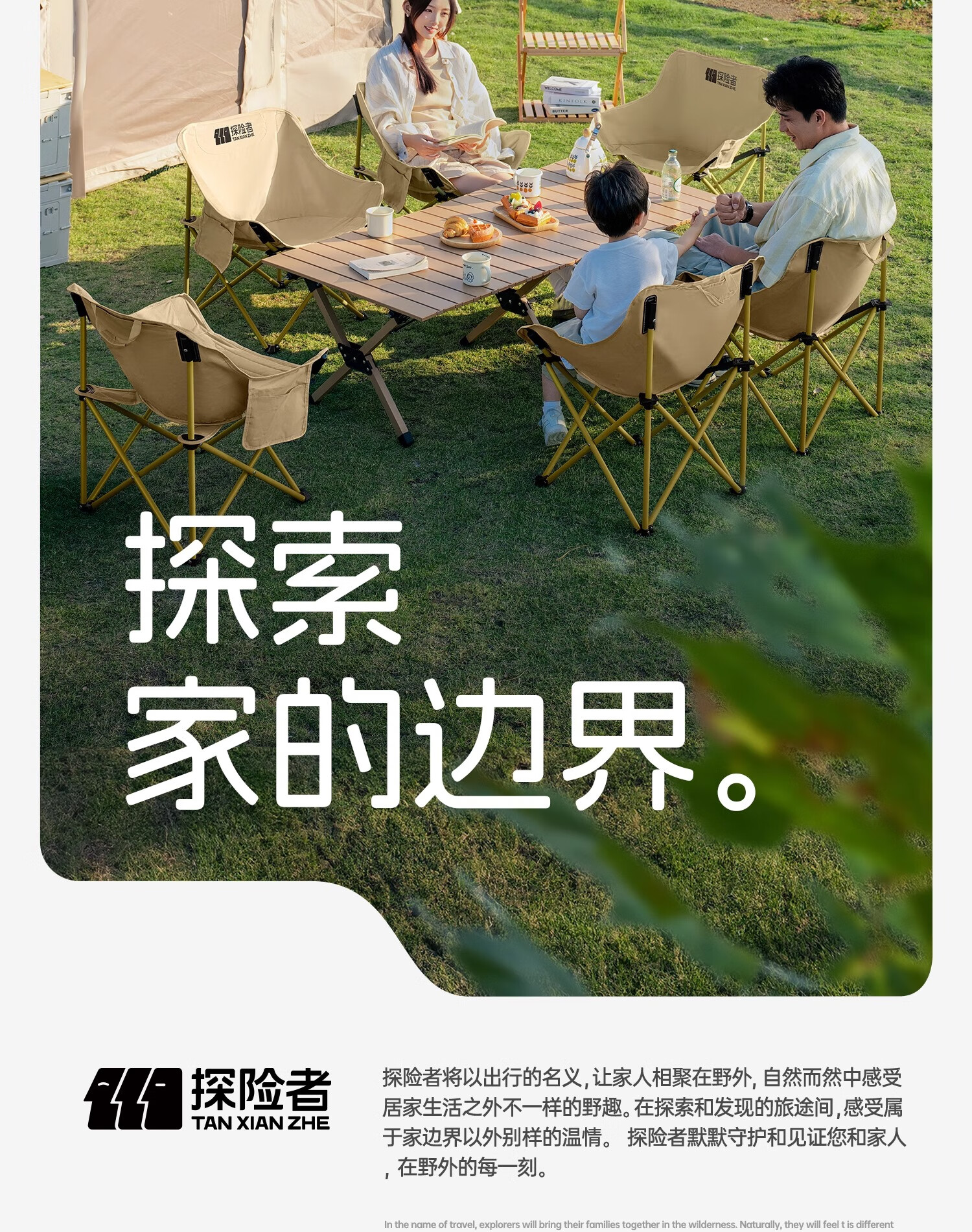 探险者(TAN XIAN ZHE)户外折叠桌蛋卷桌露营折叠桌椅全套便携野餐桌椅一桌四椅户外套装 95款白色长桌+2*加高靠背卡其
