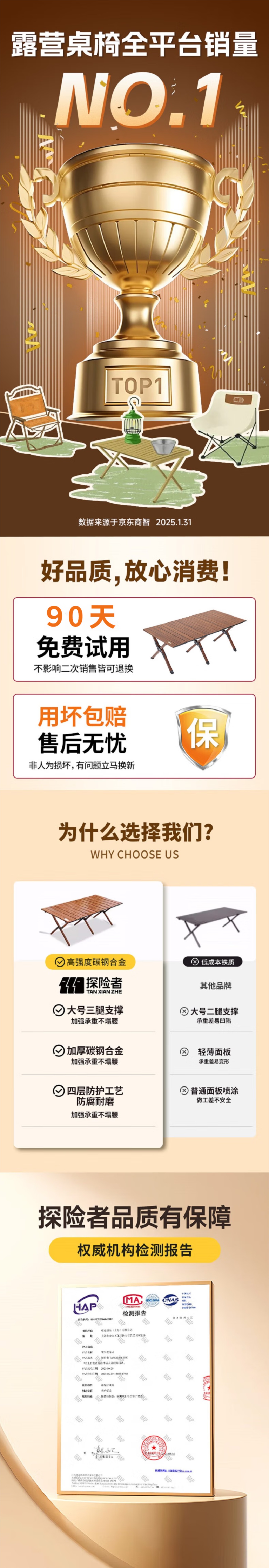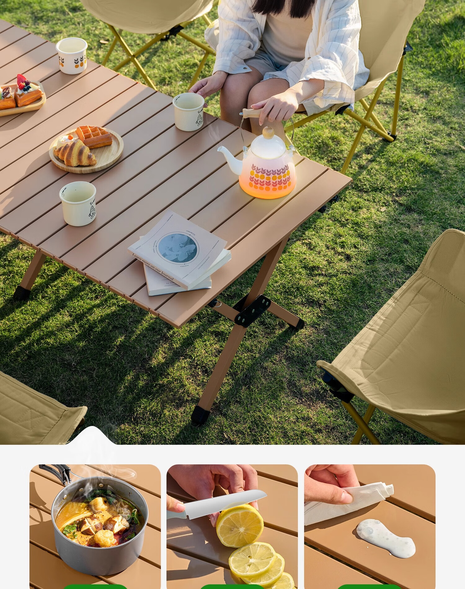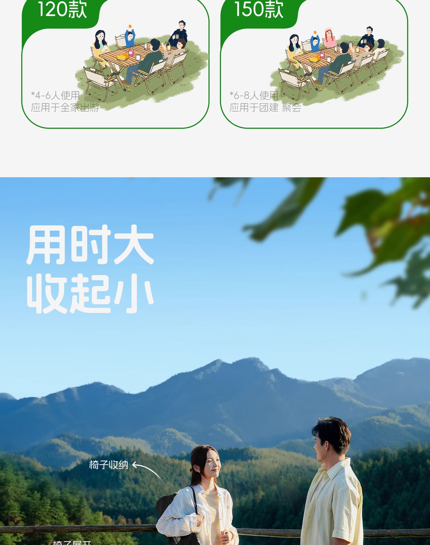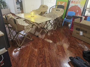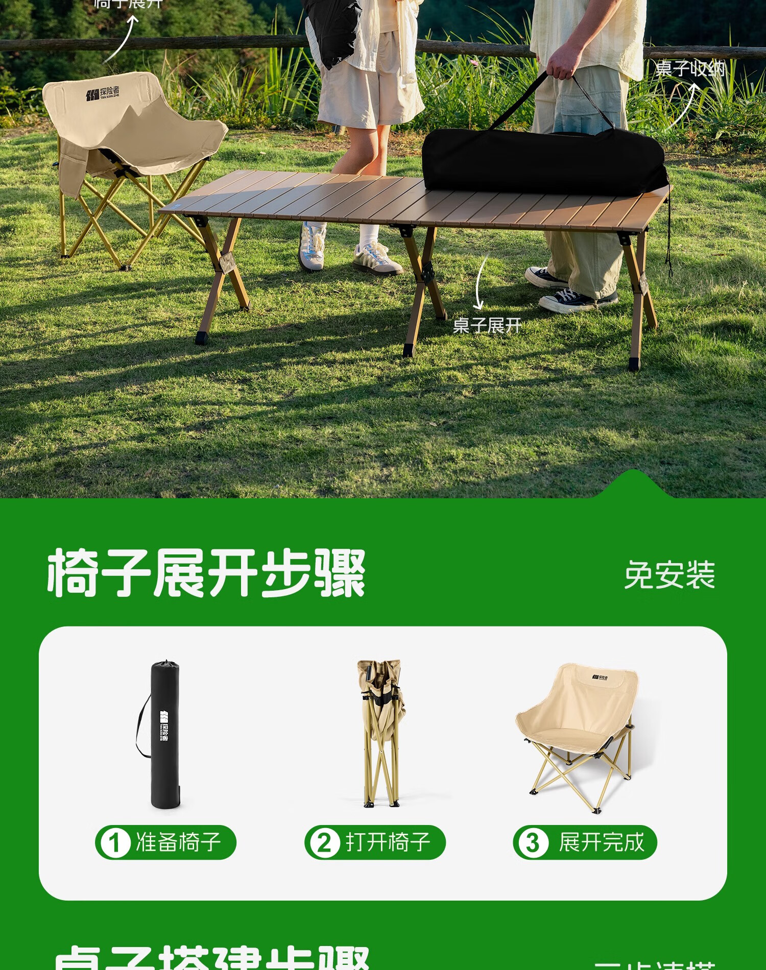 桌椅收到很久了迟迟没来评价,因为一直没空使用,这次出去露营终于派上了用场,安装很便捷,收纳也很简单,就是桌板跟桌腿卡扣的地方需要注意一下,一定要卡稳,不然容易滑掉。
