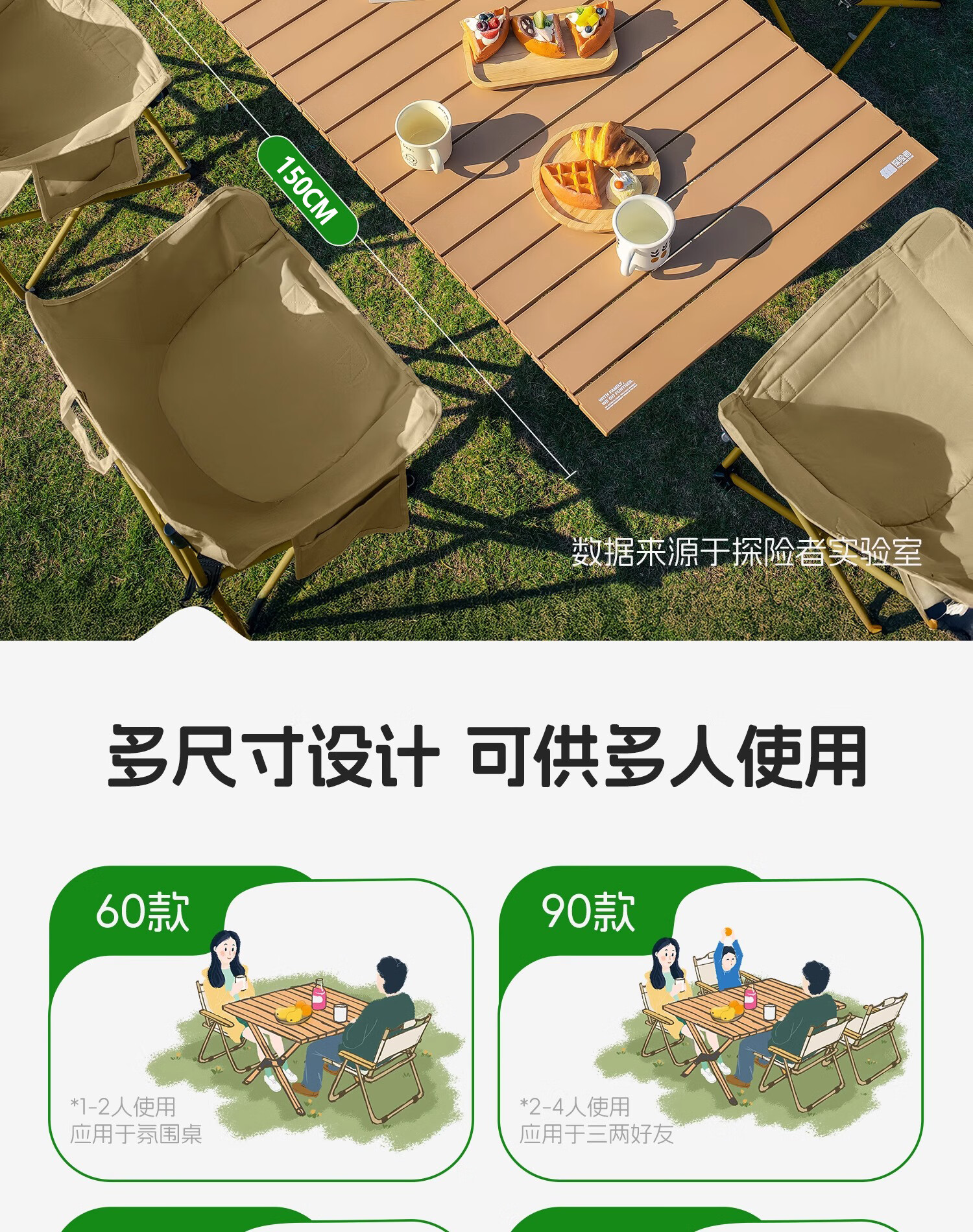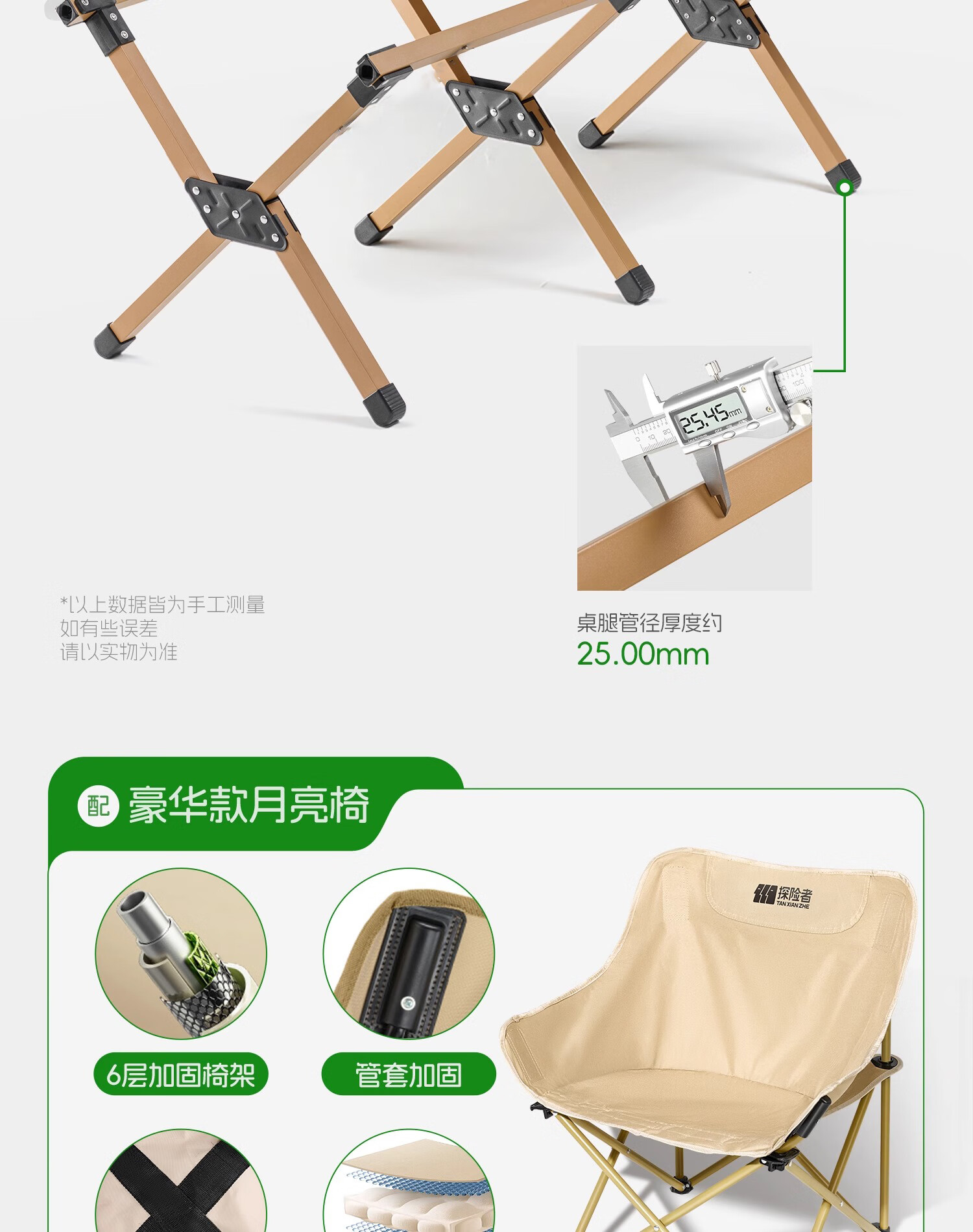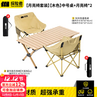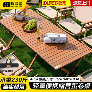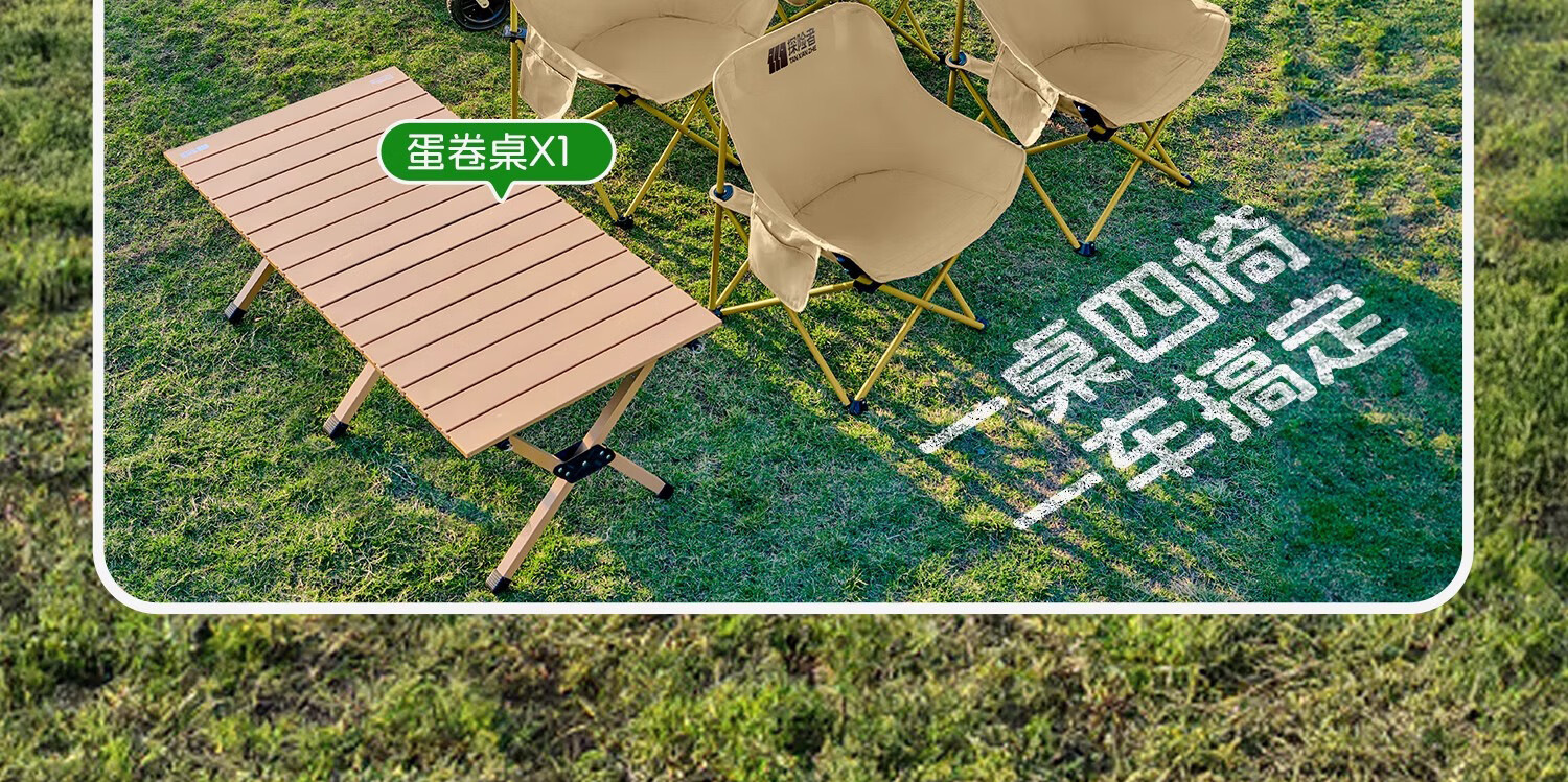 探险者(TAN XIAN ZHE)户外蛋卷桌折叠桌便携式桌椅套装露营桌子一套野餐桌装备全套摆摊 60加粗磨砂木色+2*卡其月亮椅
