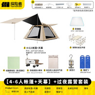 探险者帐篷户外折叠便携式野营帐过夜防雨黑胶防晒帐篷野外露营装备全套 【4-6人帐篷天幕】+露营过夜套装
