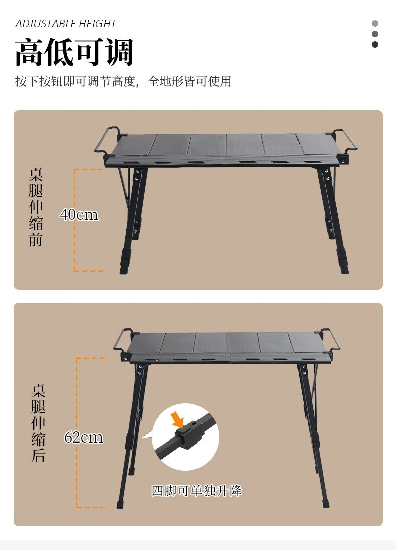 户外露营桌IGT桌自由升降移动厨房可拓展多功能便捷铝合金蛋卷桌 可拓展IGT桌带镂空