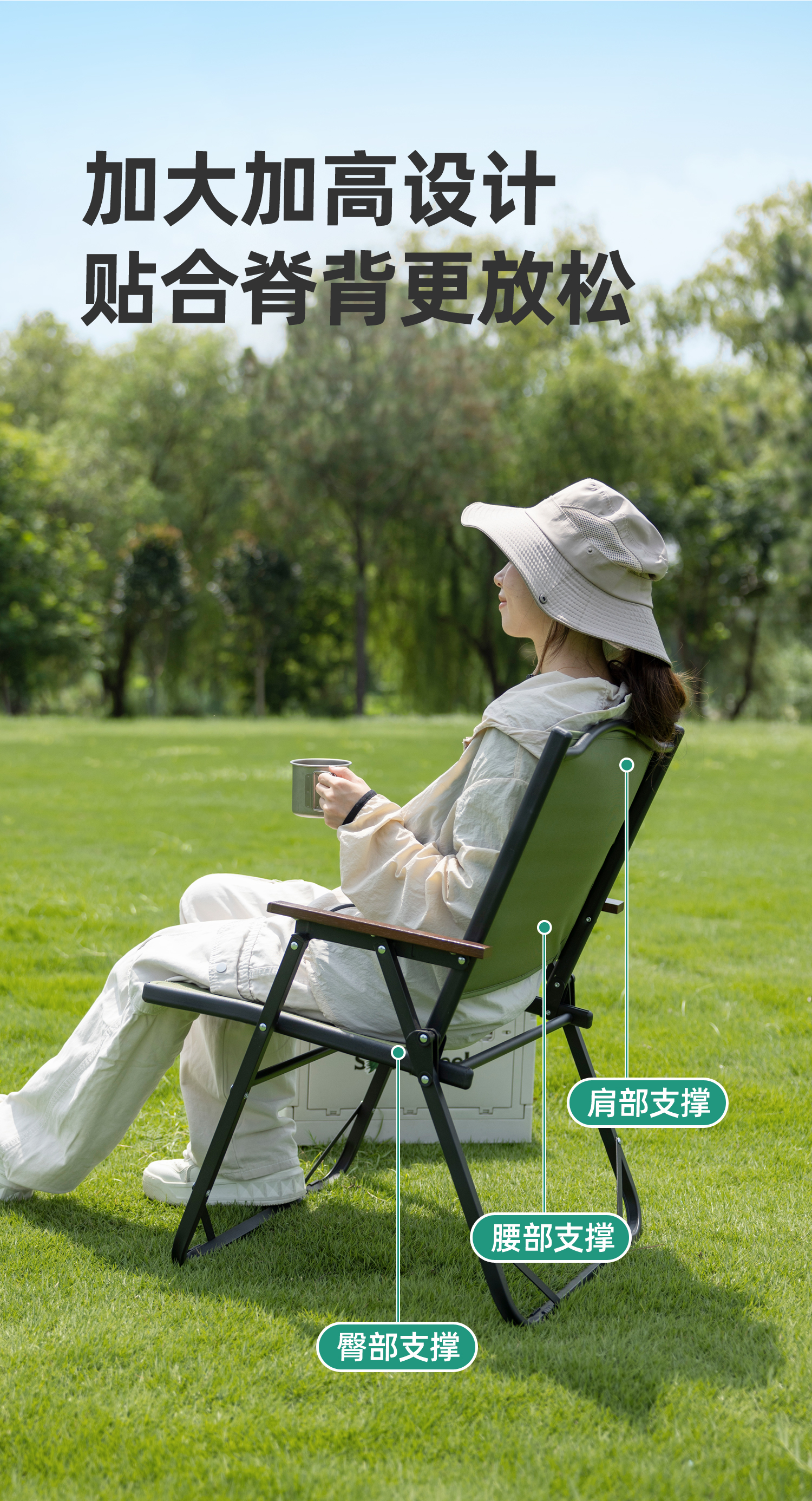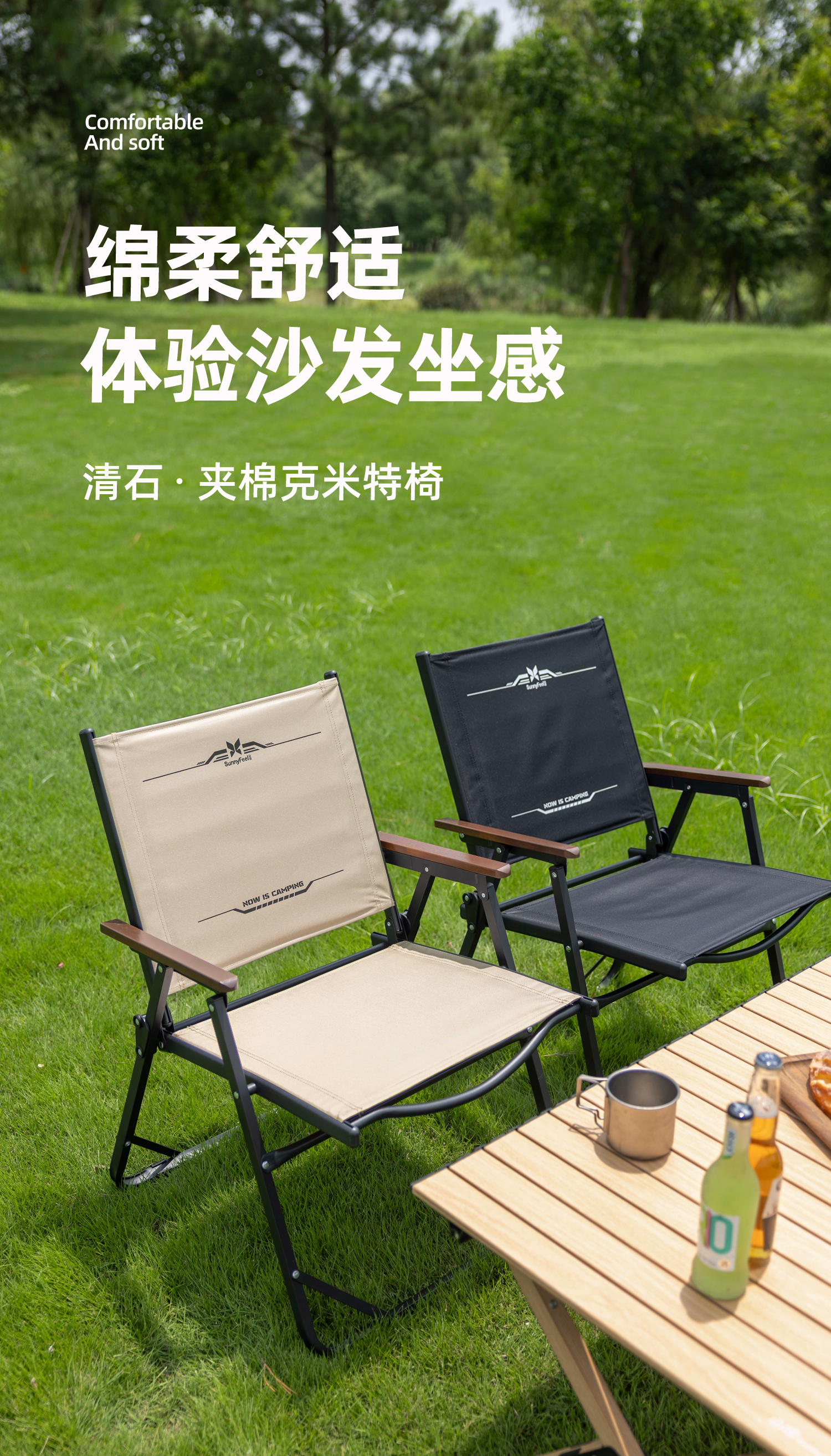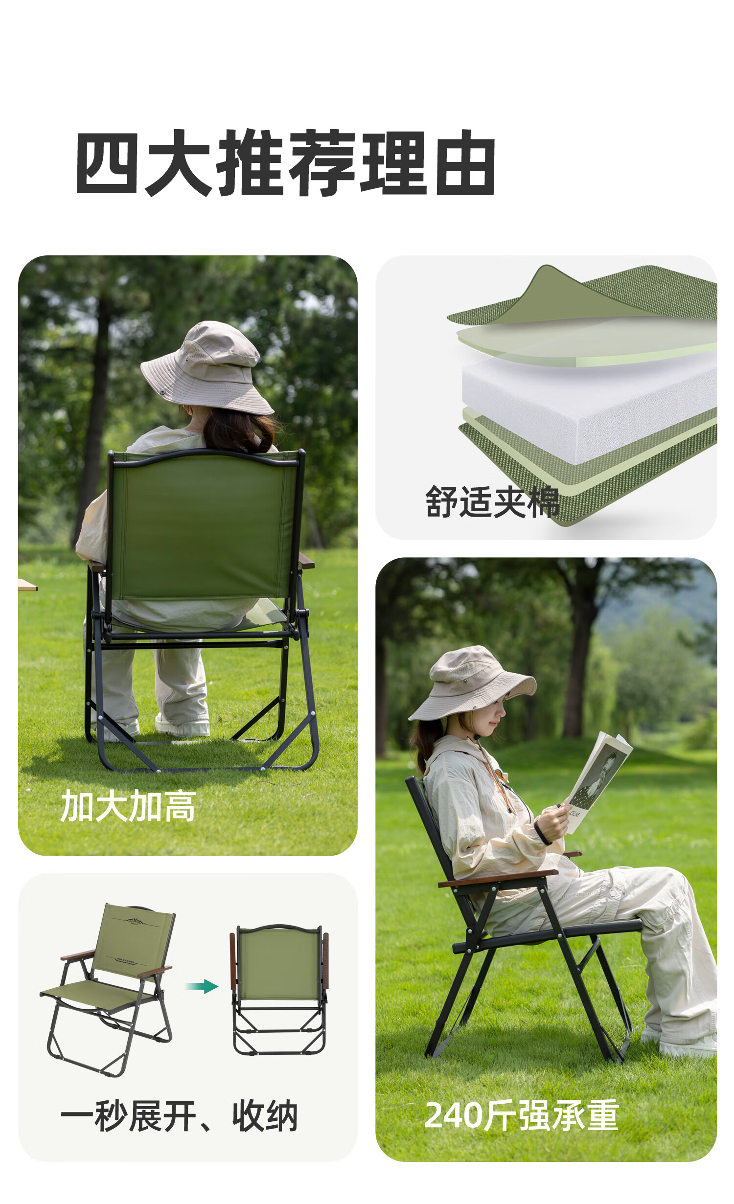 山扉清石克米特椅户外折叠椅加宽加高超轻便携高承重沙滩钓鱼凳野餐椅 清石克米特椅 卡其色