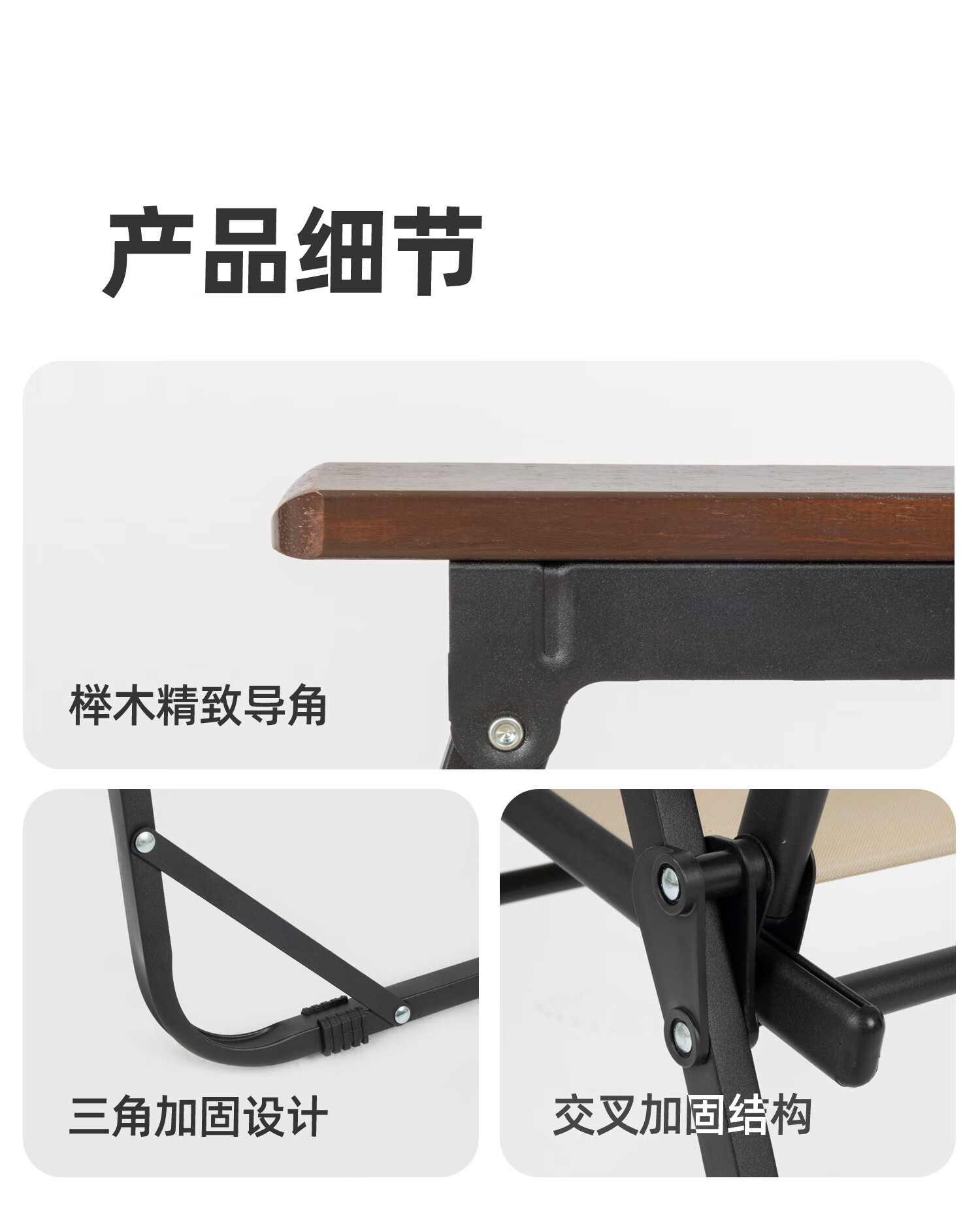 牧高笛(MOBIGARDEN)实木椅 户外露营野餐便携可拆卸实木折叠高躺椅云逸 象牙白