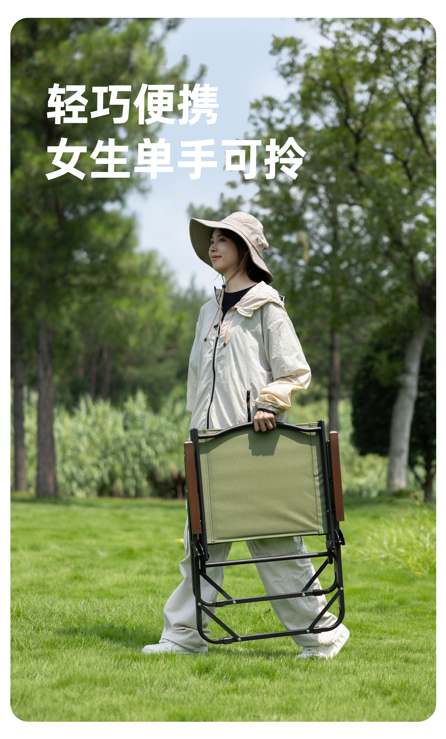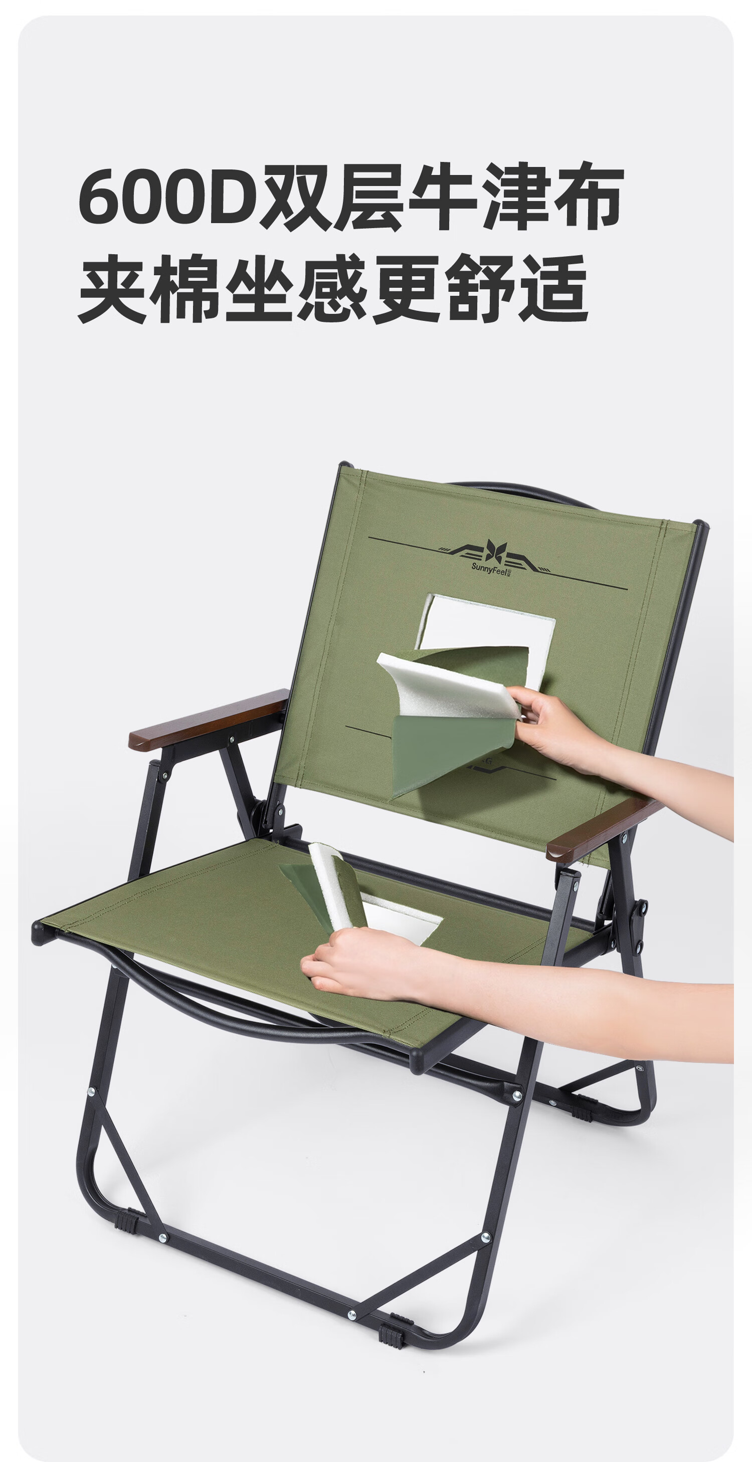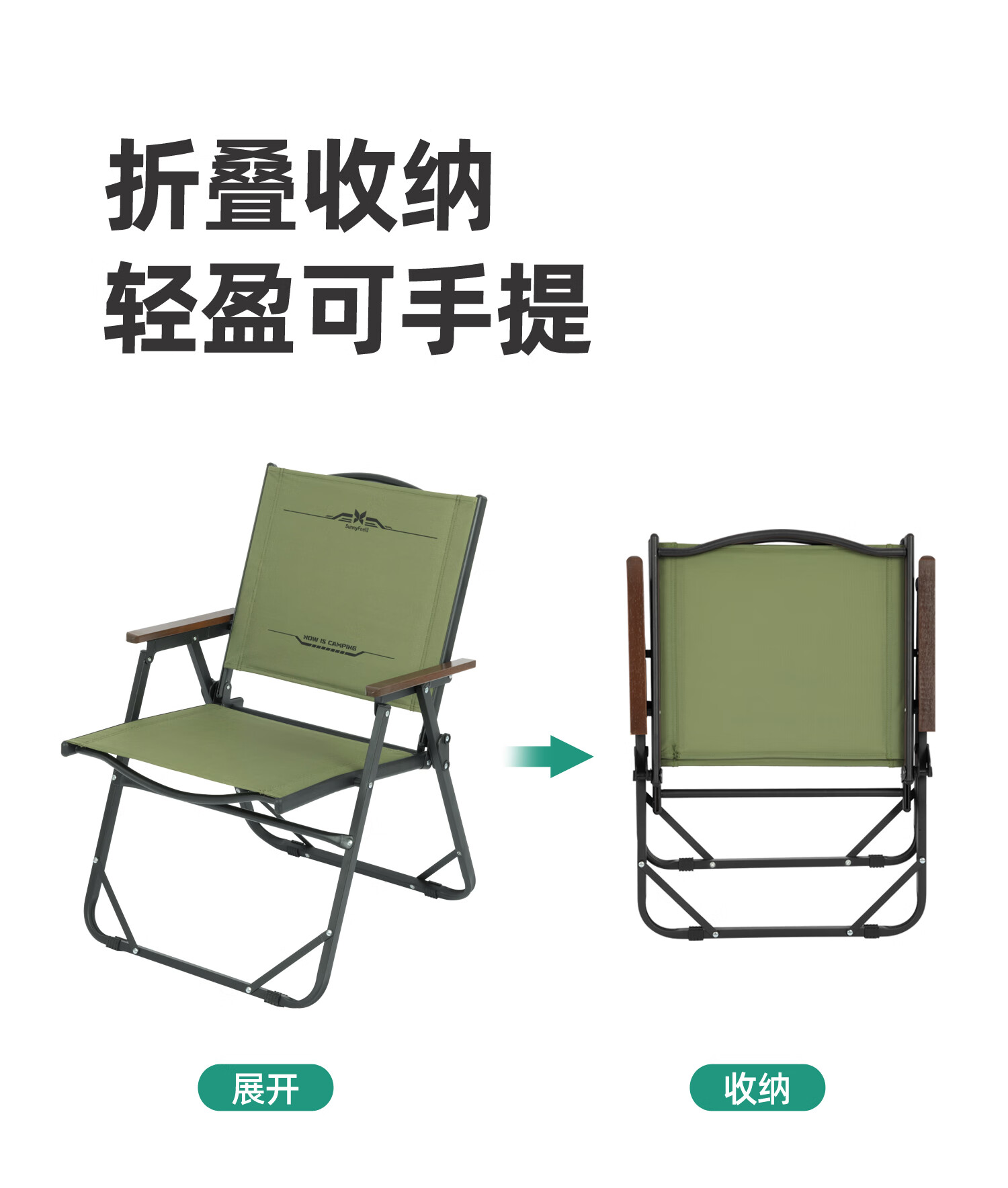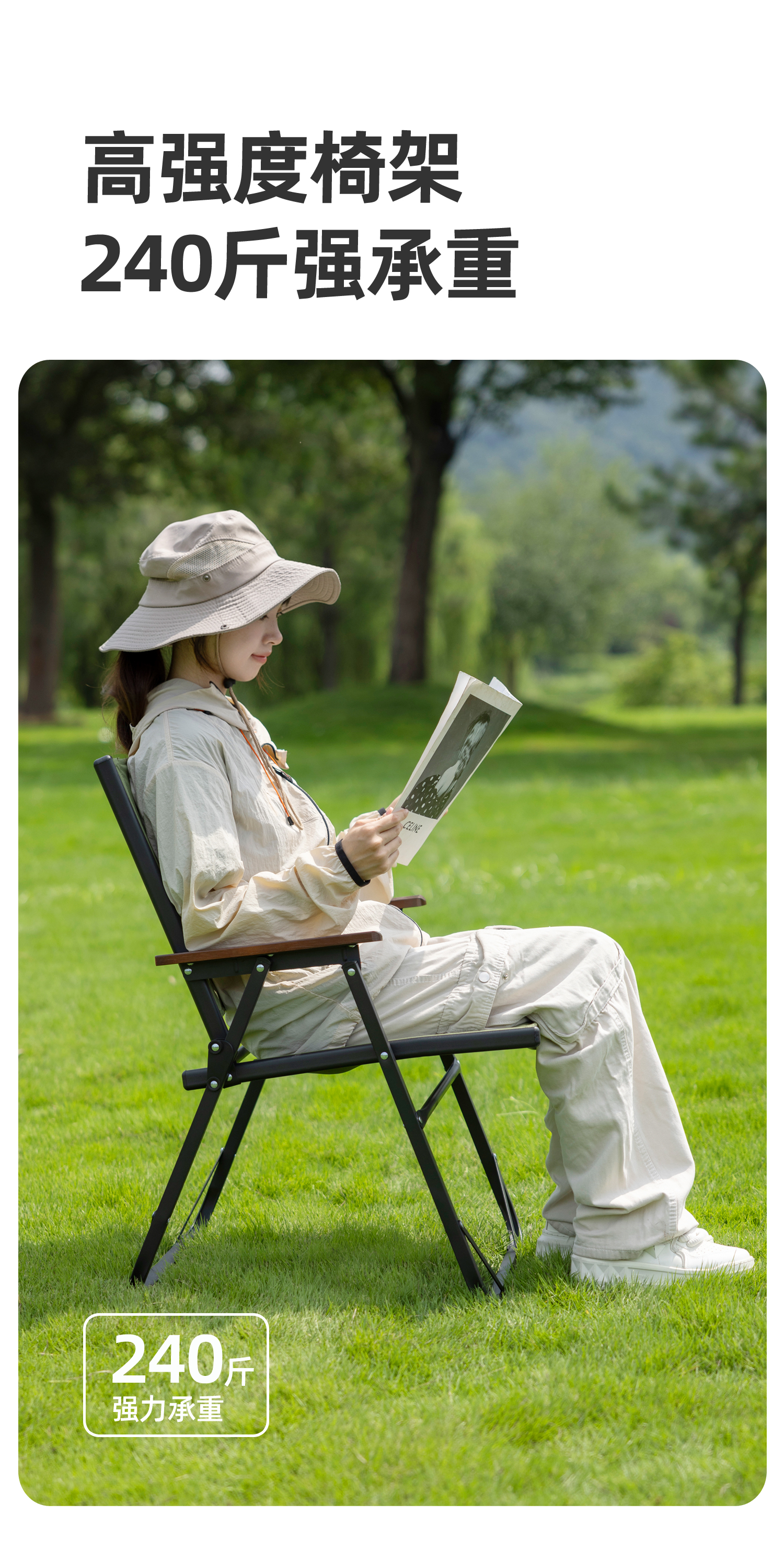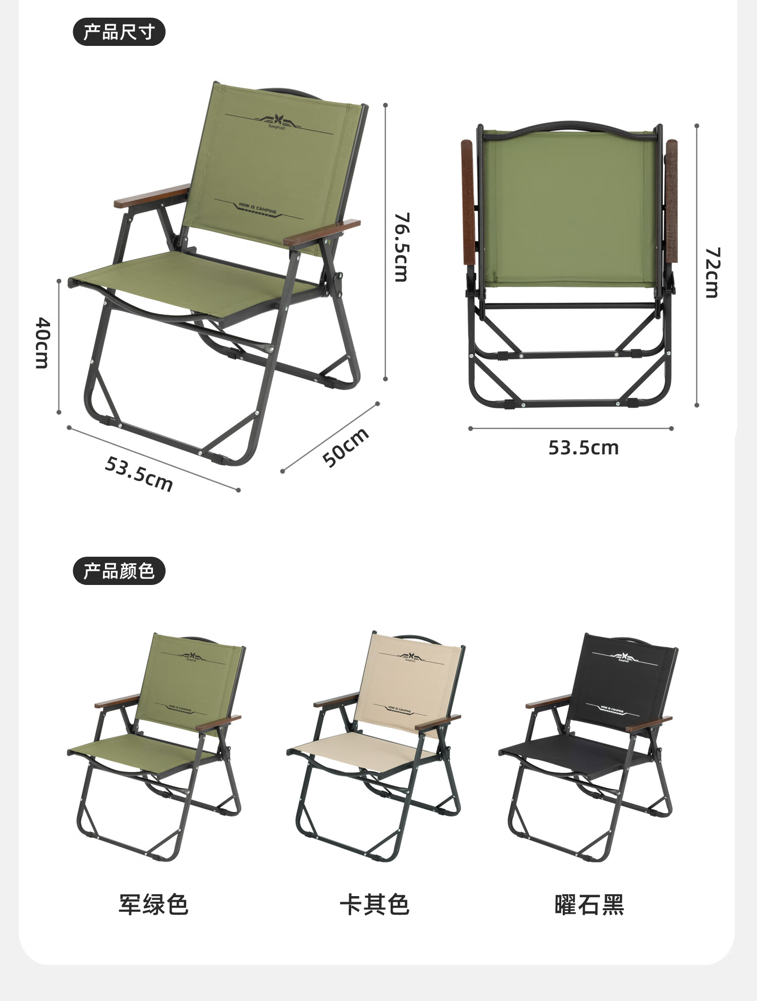 山扉林息克米特椅户外折叠椅超轻便携高承重沙滩碳钢钓鱼凳野餐椅卡其 卡其色【400斤承重/双层牛津布】林息·克米特椅
