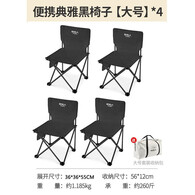 原始人户外折叠椅子钓鱼凳便携式露营野营野餐小马扎轻美术生休闲靠背椅 大号黑色椅*4【配大收纳包】