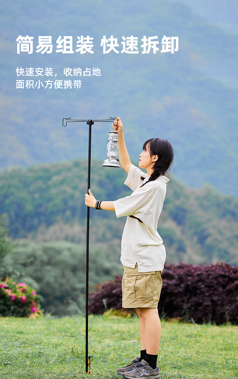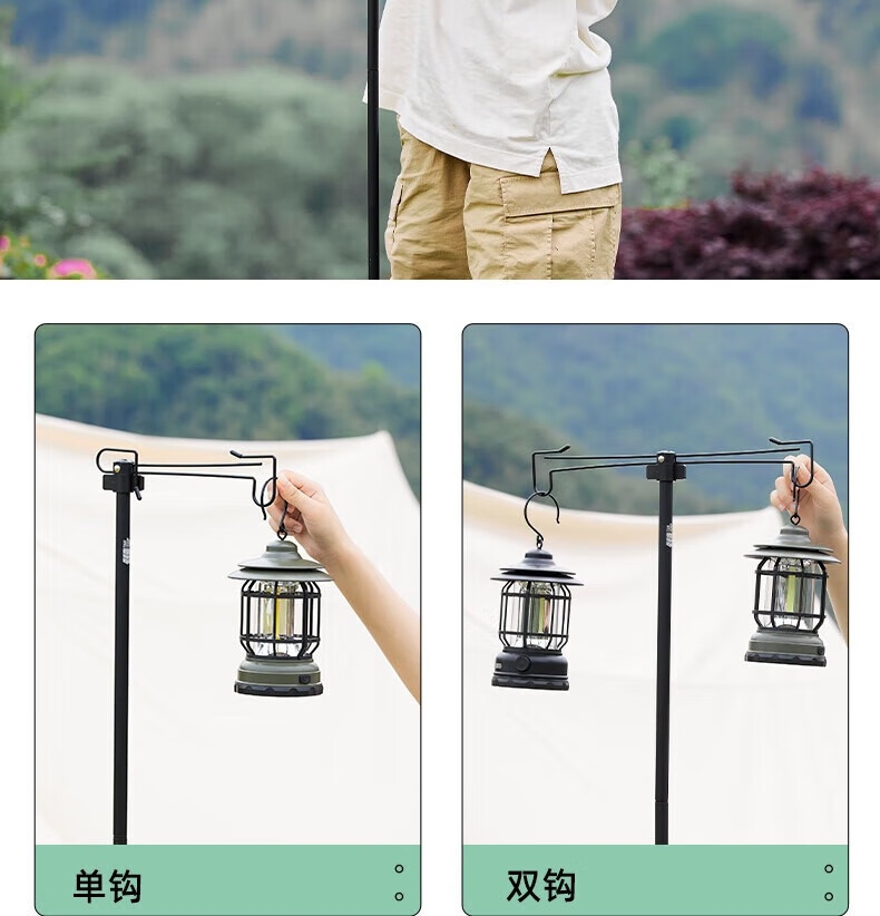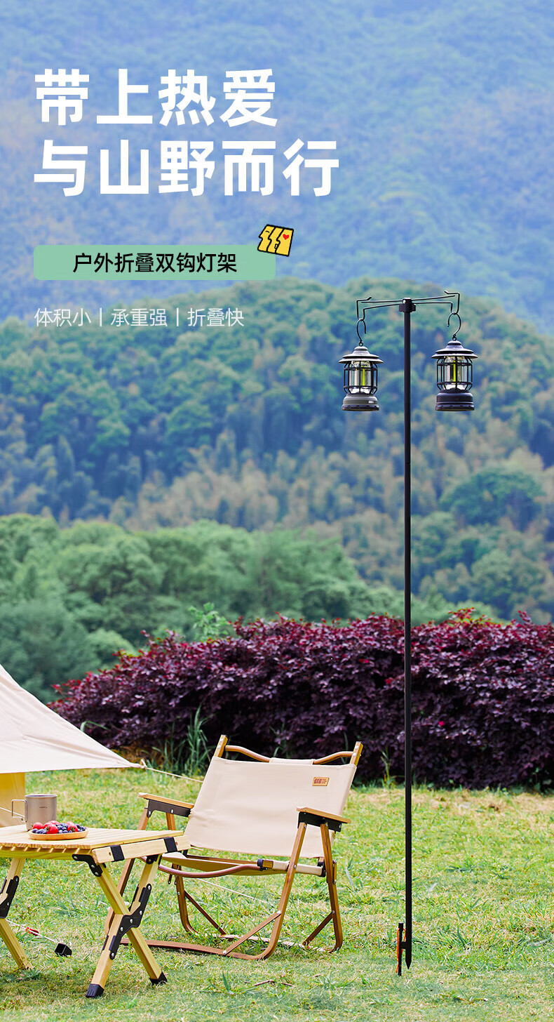 探险者户外露营灯架灯杆支架户外灯架杆折叠露营灯野营置物架 双沟桌面款+曜石黑灯