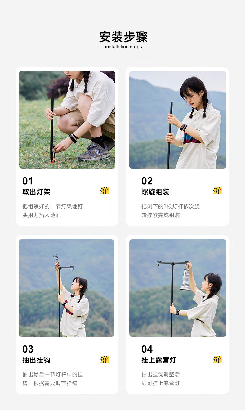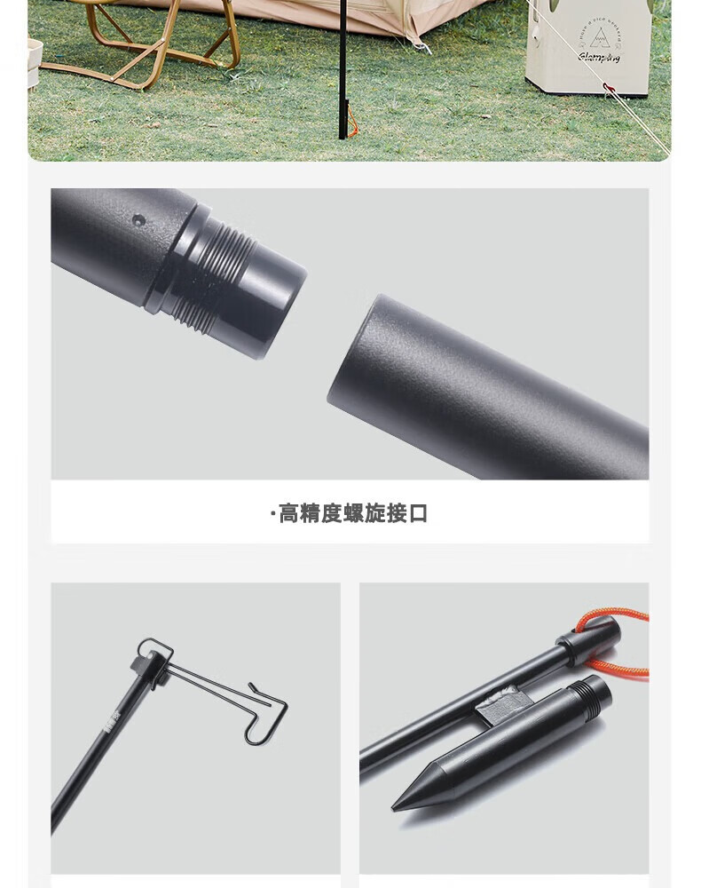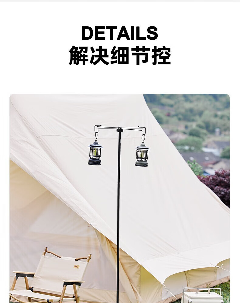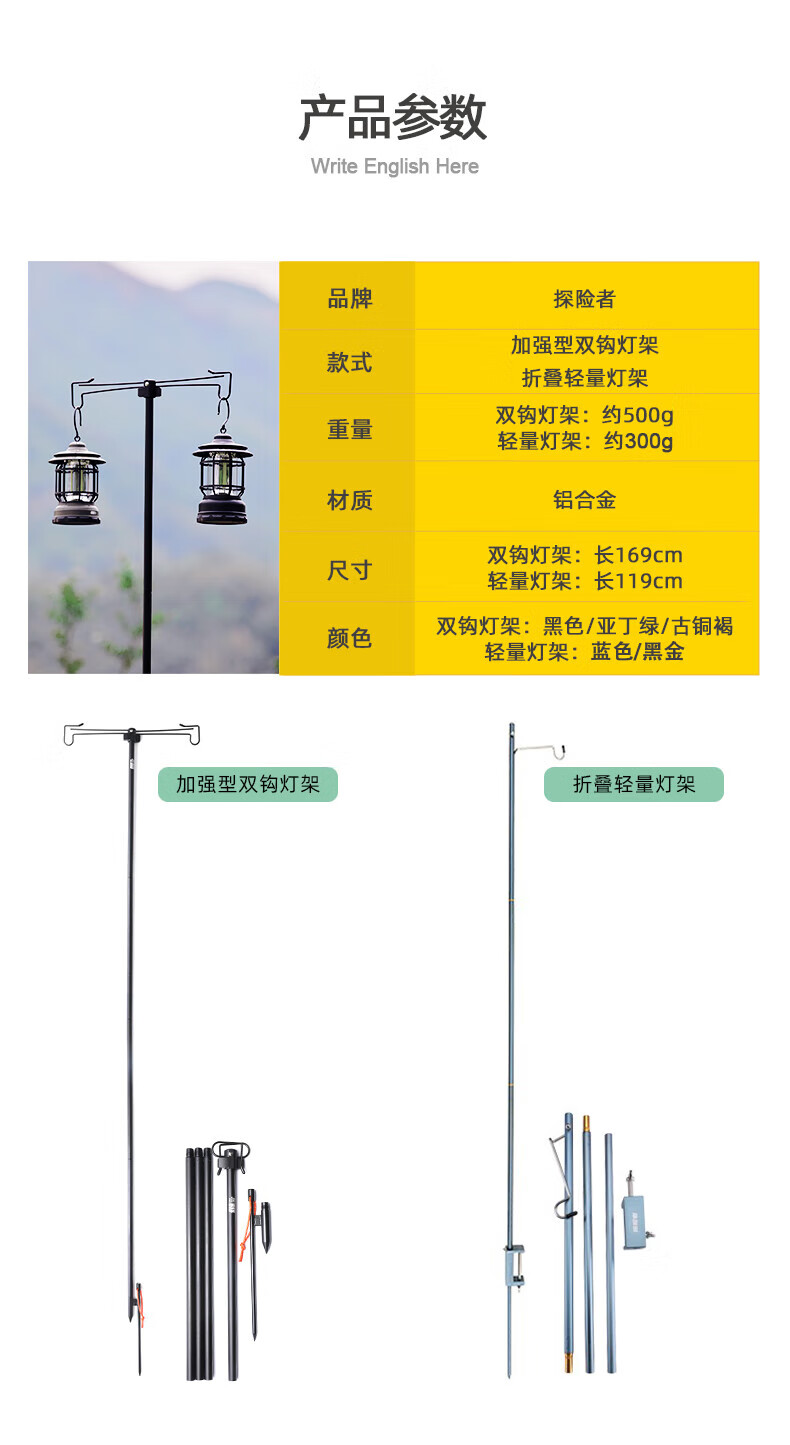 探险者户外露营灯架灯杆支架户外灯架杆折叠露营灯野营置物架 双沟桌面款+曜石黑灯