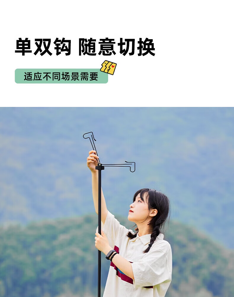 THOUS WINDS千风户外M10折叠双头灯杆架营地灯挂勾架铝合金支架可拆便携架杆 M10折叠双头轻量灯杆架 黑色