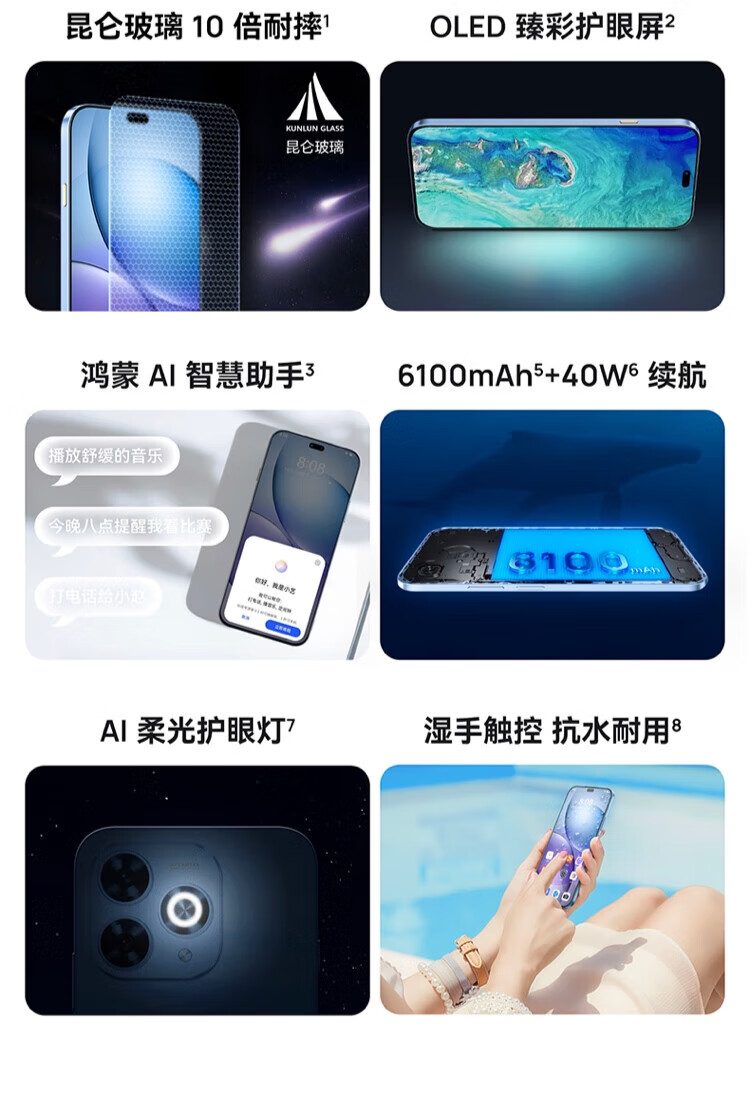 华为Hi畅享 80 Pro 昆仑玻璃10倍耐摔 OLED护眼屏 6100mAh+40W巨鲸续航 新品5G手机 12GB+512GB 晨光白 原包装+原装充电器