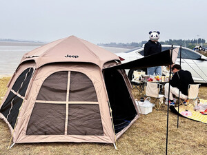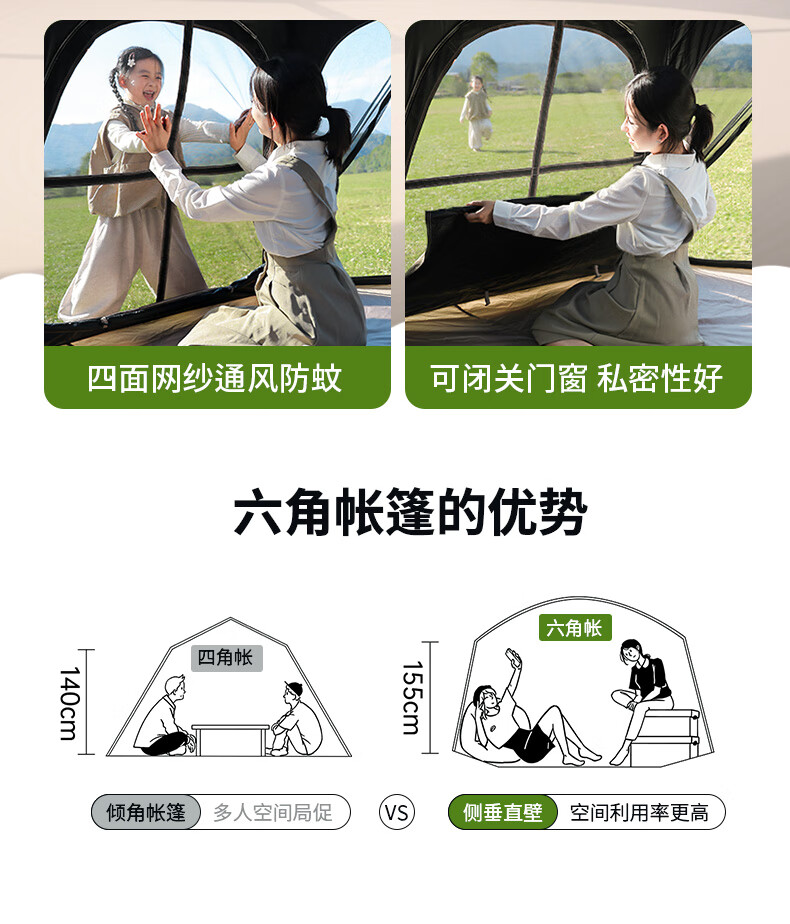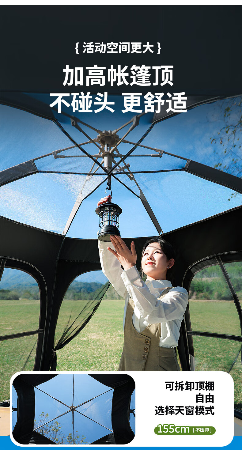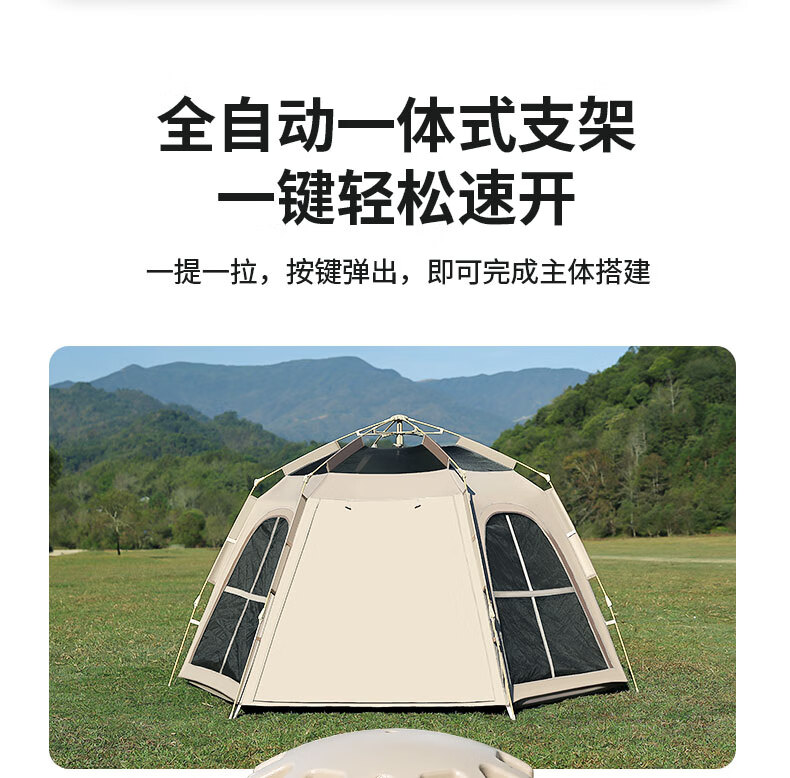 北极狼六角帐篷户外露营便携大空间速开全自动帐篷防晒防雨野营装备 六角帐【基础套餐】 小号2-4人【240*210*140cm】